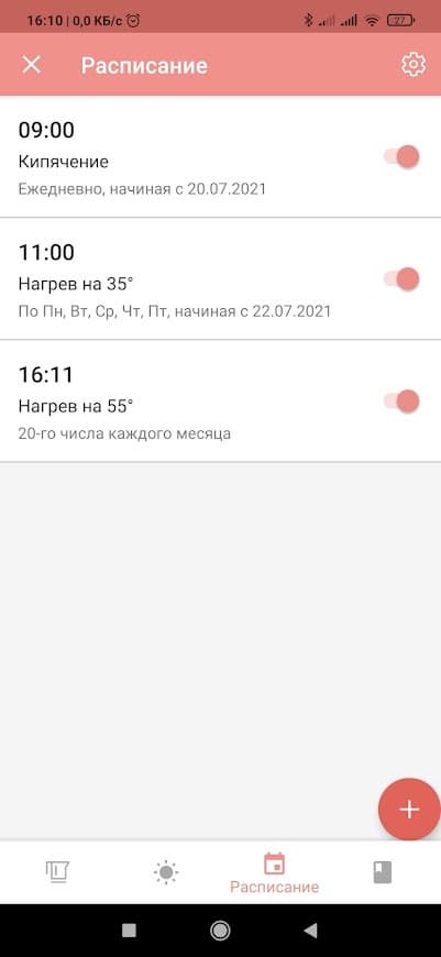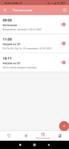 С помощью приложения вы можете настроить расписание работы RK-M215S. Чайник можно запрограммировать на ежедневное, еженедельное и даже ежемесячное включение при заданных параметрах.