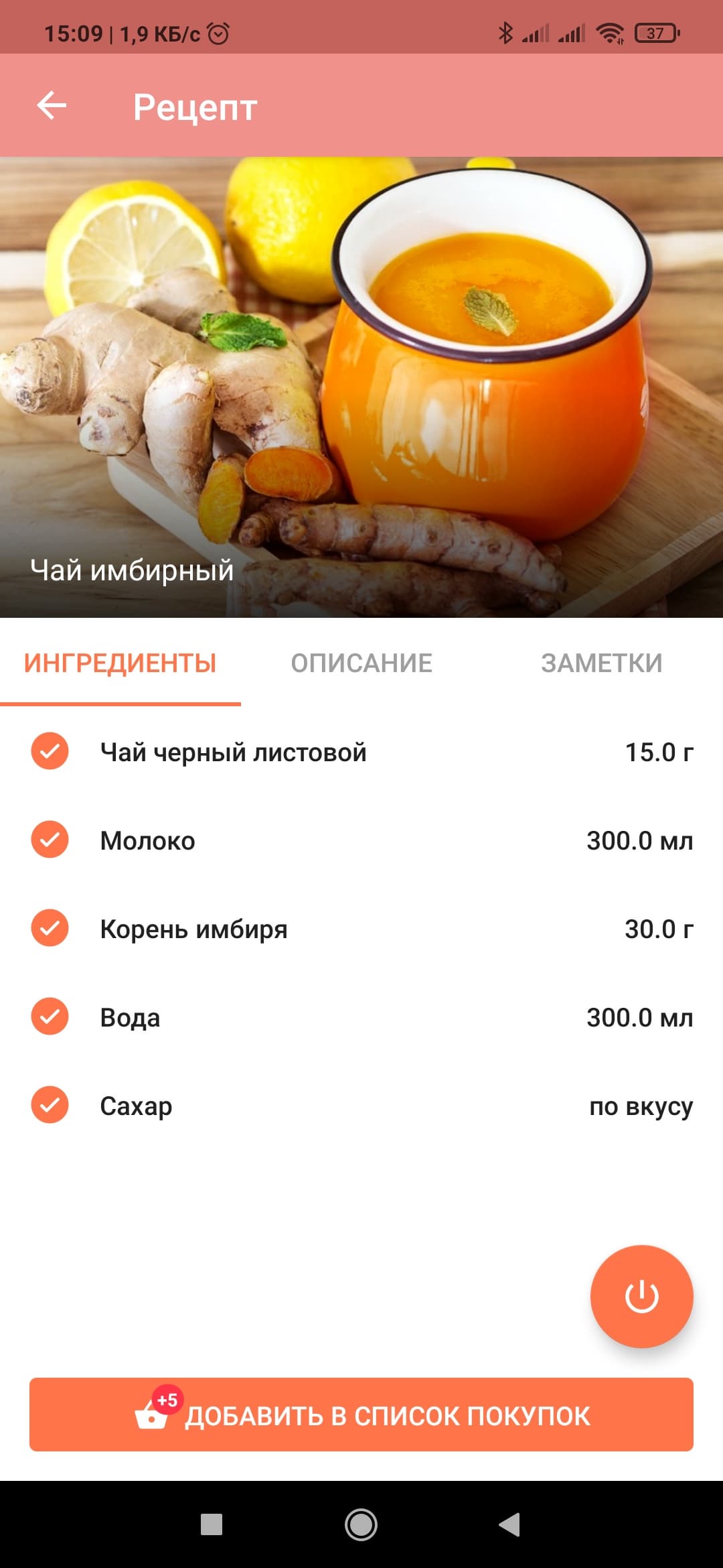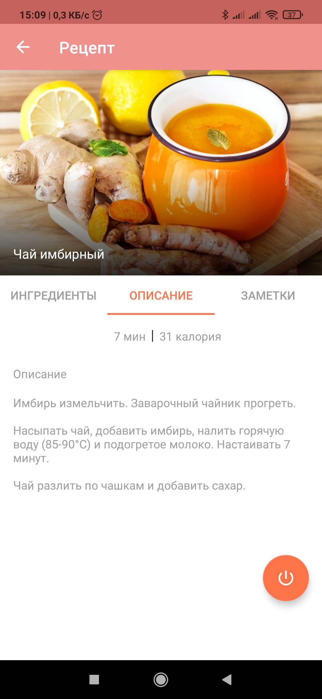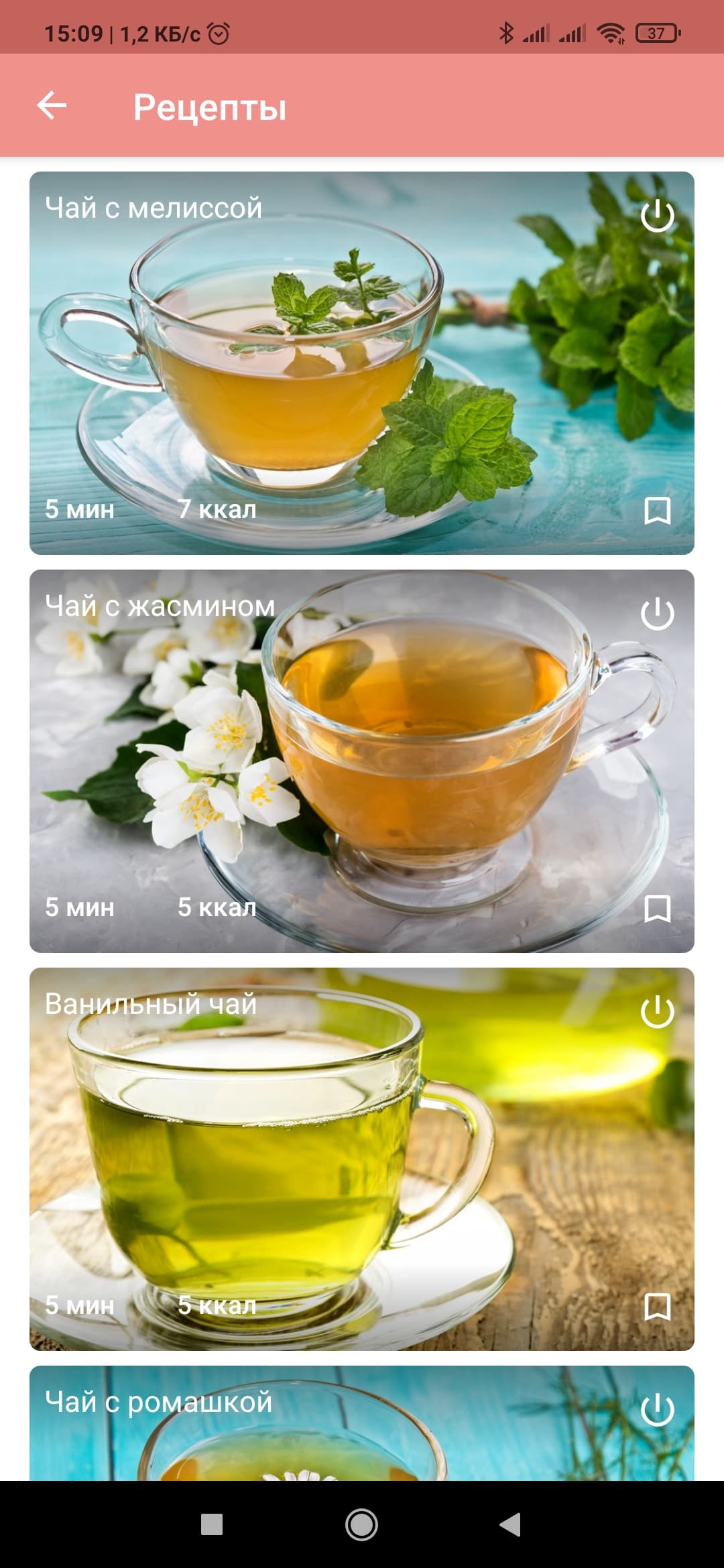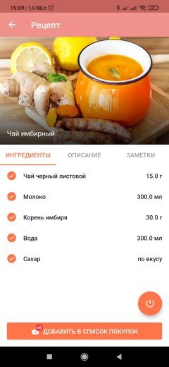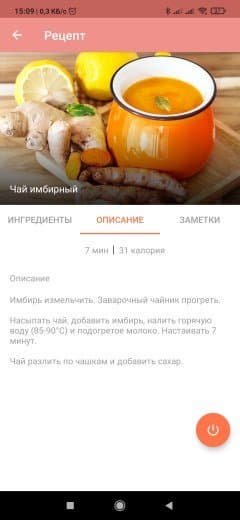 В правом нижнем углу экрана находится пиктограмма, при нажатии на которую пользователь переходит к вкладке «Рецепты». Там можно найти множество способов приготовления чая, чайник можно запустить из вкладки с рецептом — вода нагреется до нужной температуры.