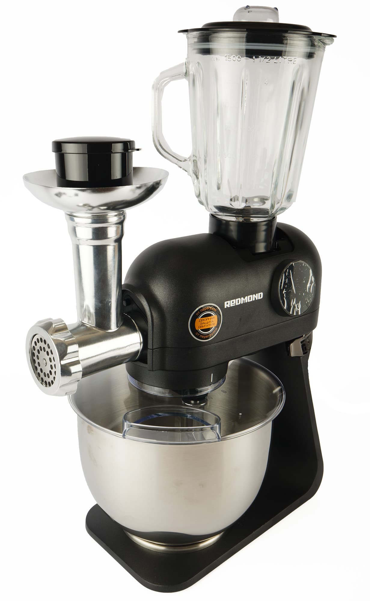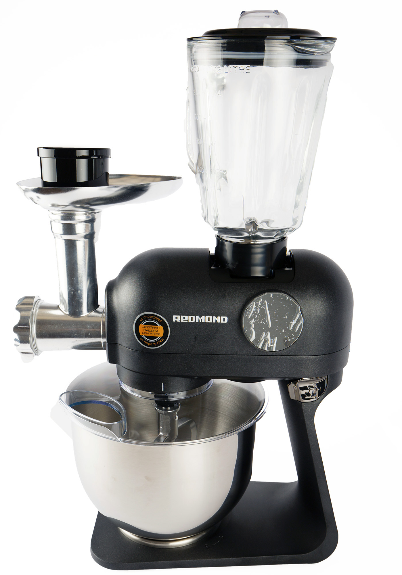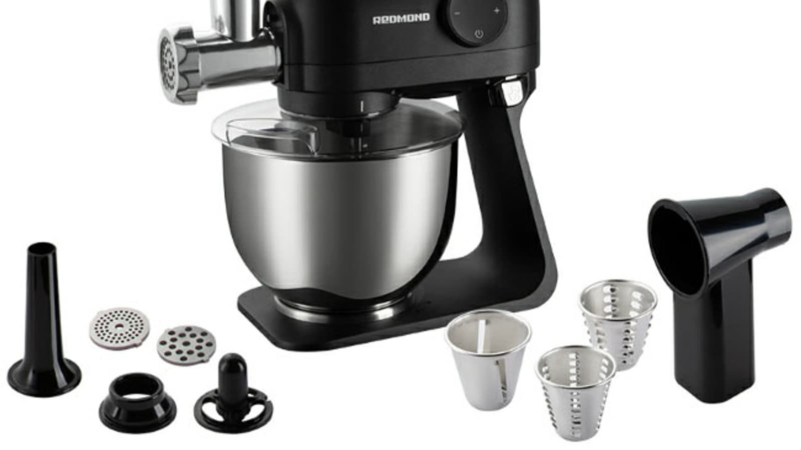 Redmond RKM-4021 — настоящий помощник, объединивший в себе сразу 4 отлично работающих прибора. Он замесит самое сложное тесто и приготовит фарш за несколько минут — вам останется лишь налепить пельменей (да, это техника еще не освоила, как ни странно). Параллельно можно и соус в блендере приготовить, а на терке — салат, и все это с помощью одного устройства, занимающего не так уж много места на кухне.