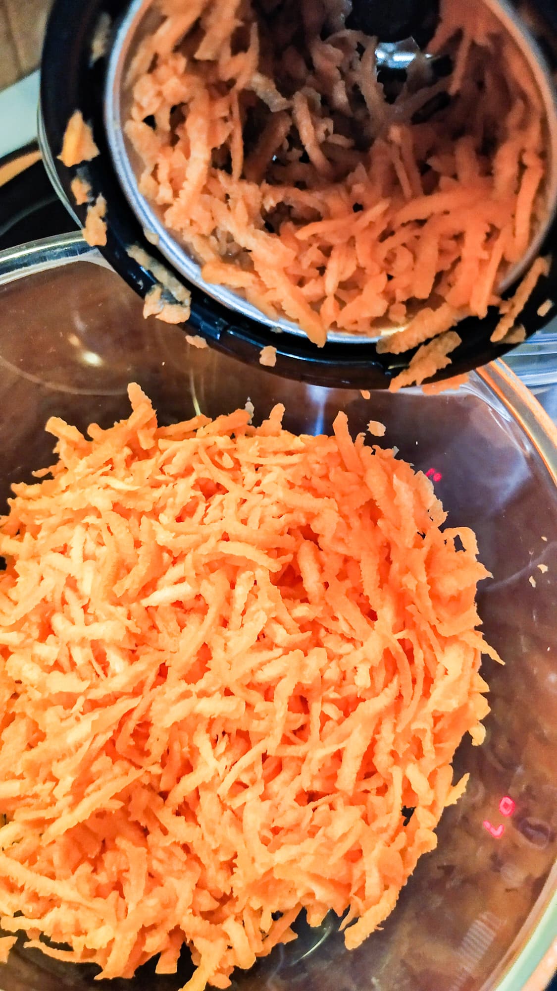 На три небольшие морковки тоже ушло не больше минуты. Использовалась мелкая терка.