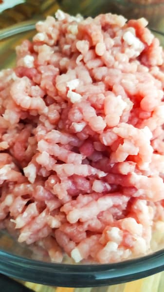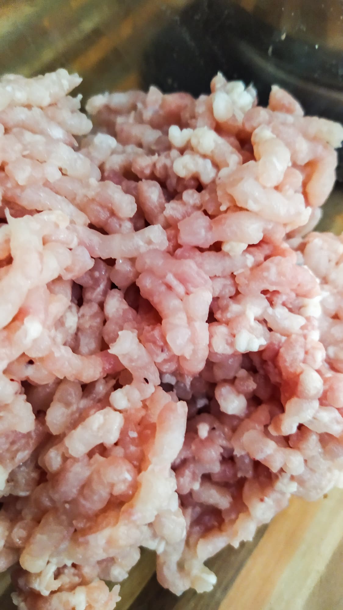 Фарш надо как-то использовать, поэтому мы решили сделать митболы, или, говоря проще, тефтели. Постную свинину решили разбавить филе куриного бедра.