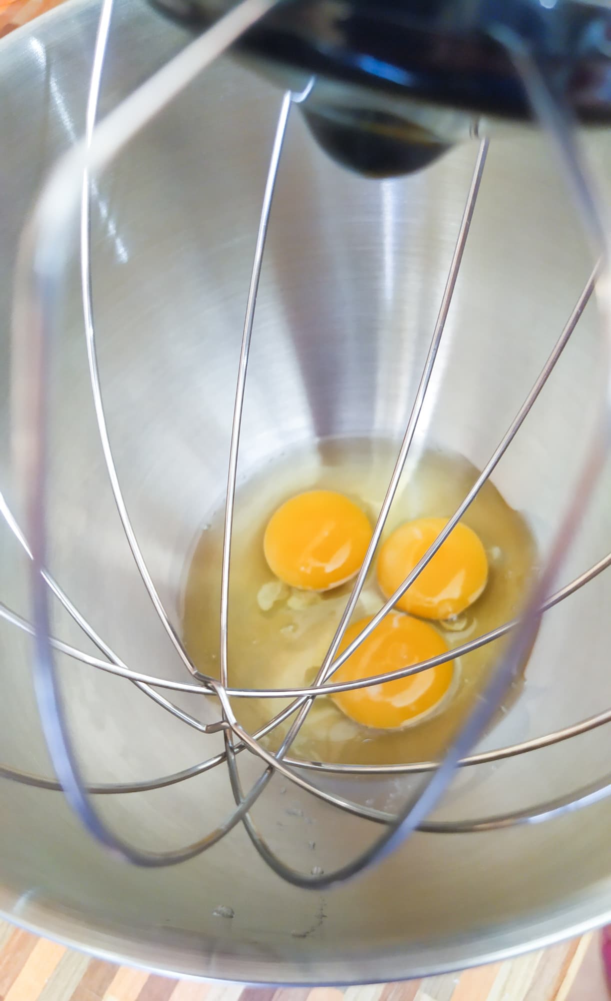 Посмотрим, как ведет себя миксер при обработке малого объема продуктов. В книге рецептов майонез советуют делать в блендере, мы же решили обратиться к более традиционному методу и вооружились насадкой-венчиком.