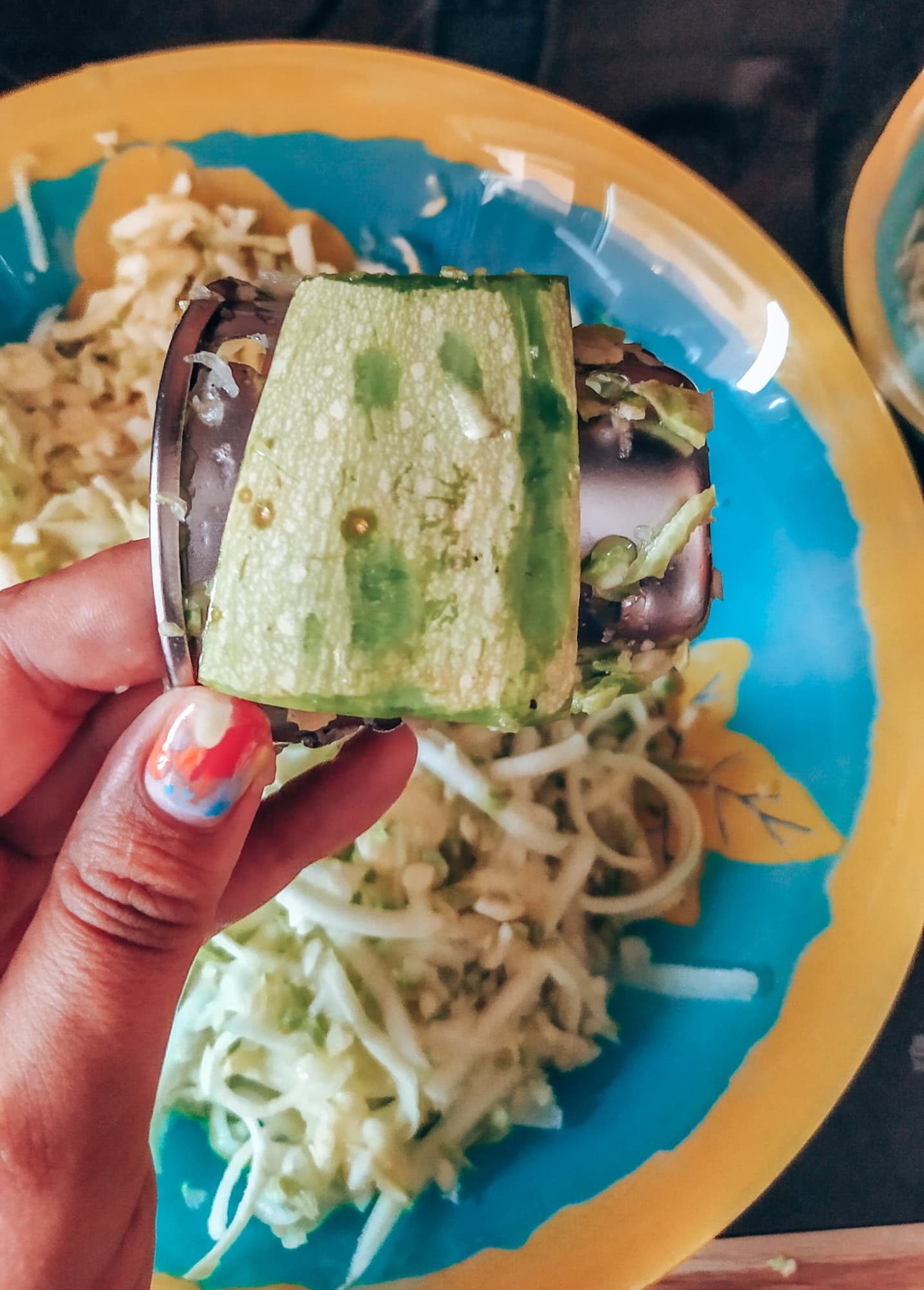 Между теркой и корпусом остался небольшой кусочек кожуры.