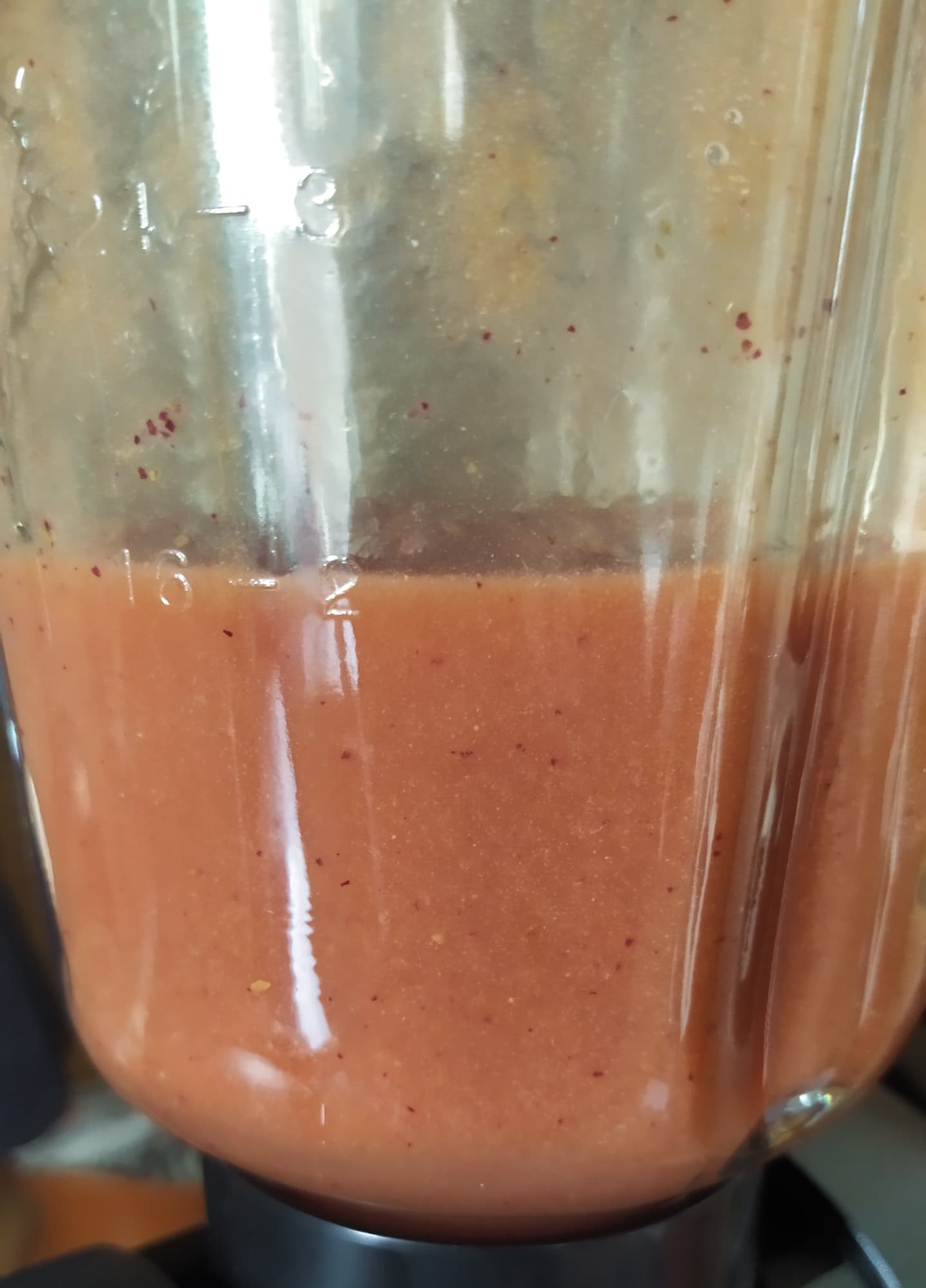 Через минуту в чаше было однородное пюре с редкими кусочками шкурок нектаринов. Еще через 30 секунд ошметки шкурки остались только на стенках блендера.