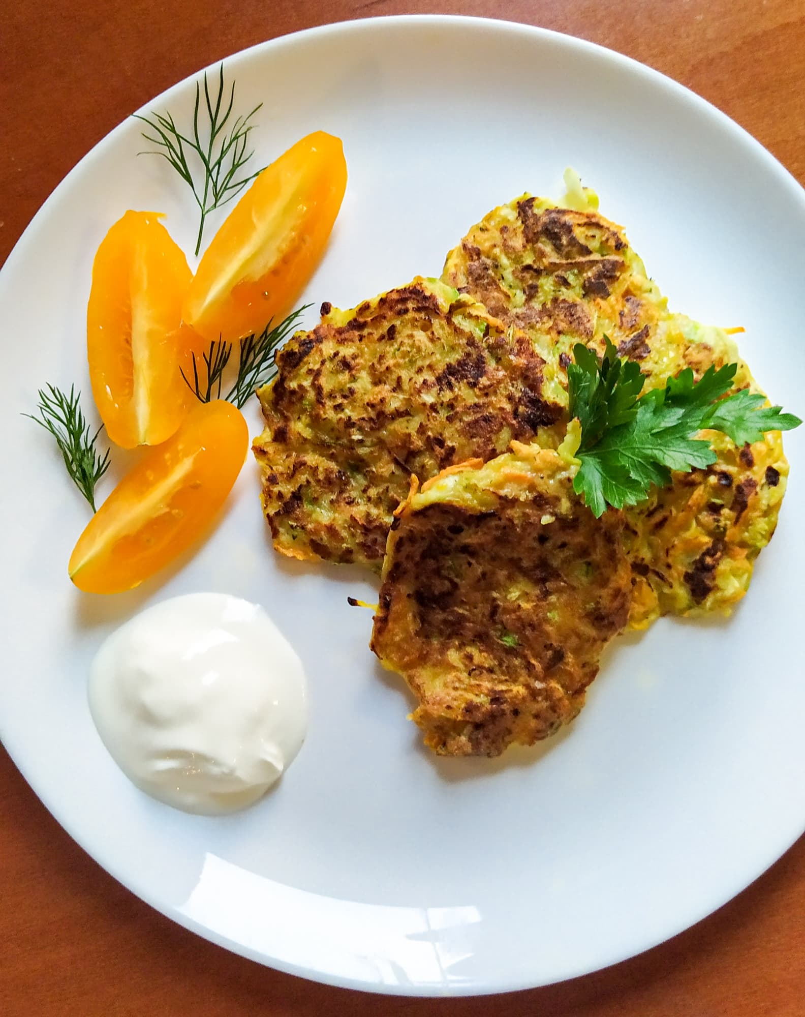 В натертые овощи добавили яйцо, немного муки и специй и поджарили оладьи. Легкий ужин был готов быстрее, чем закончилась серия любимого ситкома.