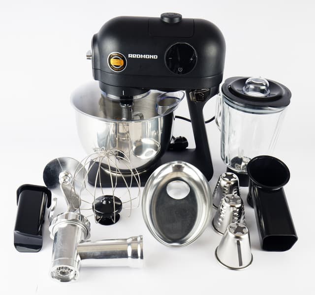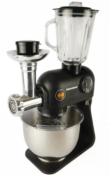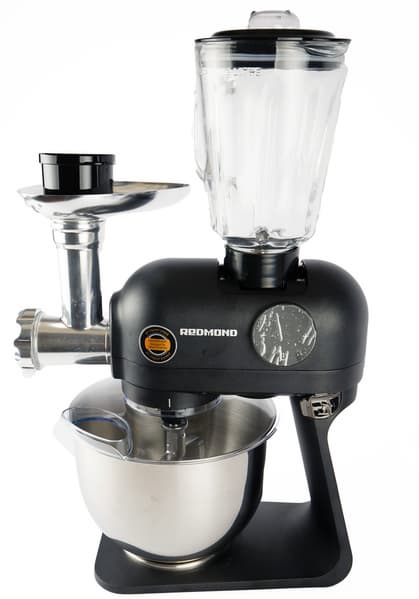 На этот раз в нашей лаборатории гостит (и работает) кухонная машина Redmond RKM-4021. Прибор объединяет в себе планетарный миксер, мясорубку, блендер и терку. Звучит впечатляюще, впечатляет и цена устройства. Главная интрига сегодняшнего тестирования — каково соотношение цены и качества у нашего испытуемого.