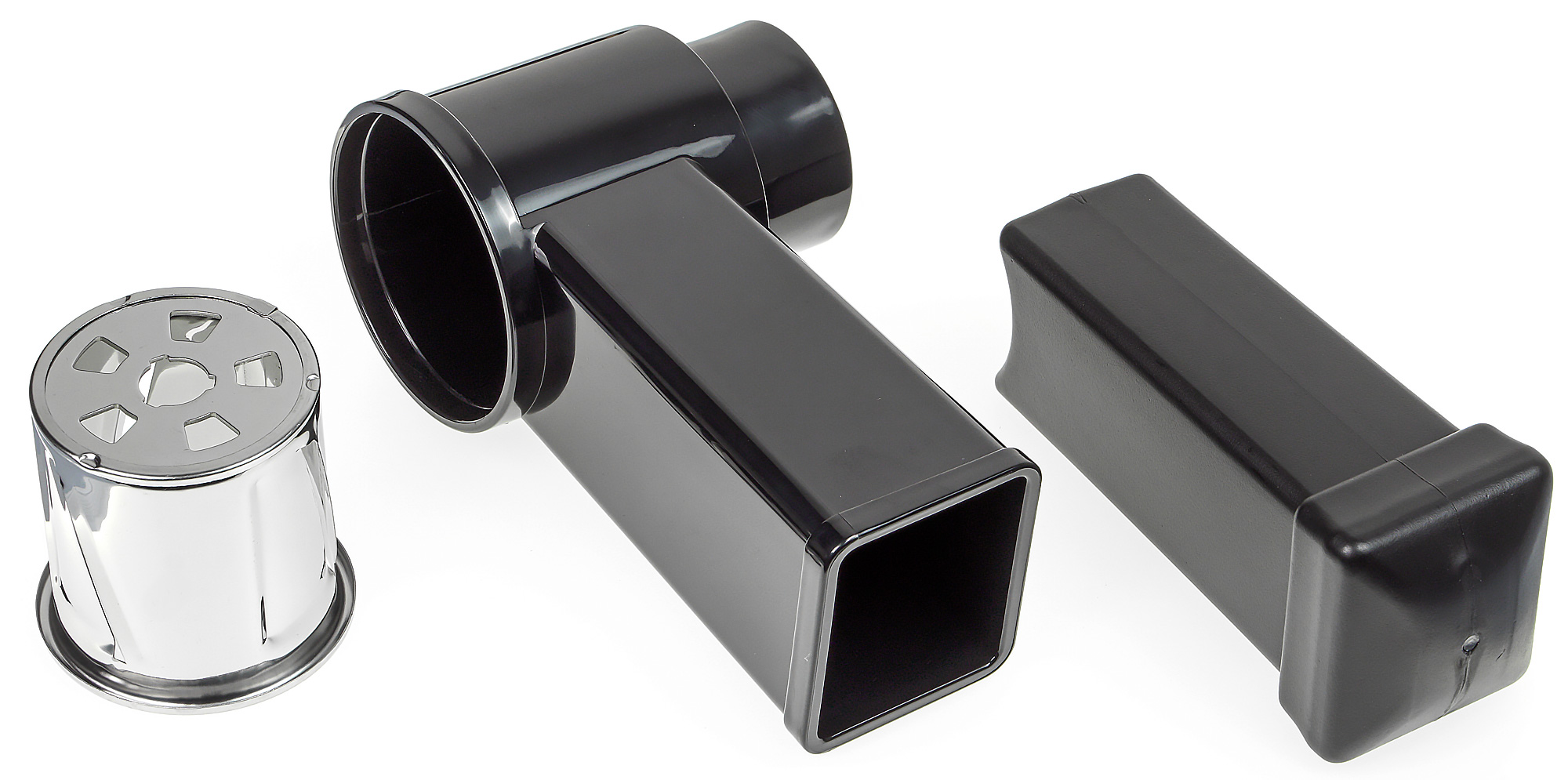 Овощерезка состоит из пластикового блока и барабанных терок, вставляемых в него. Терки закрепляются с помощью пластиковых выступов в блоке. В комплект входят три терки — крупная, средняя, мелкая, а также шинковки. Для блока овощерезки предусмотрен собственный толкатель из плотного пластика.