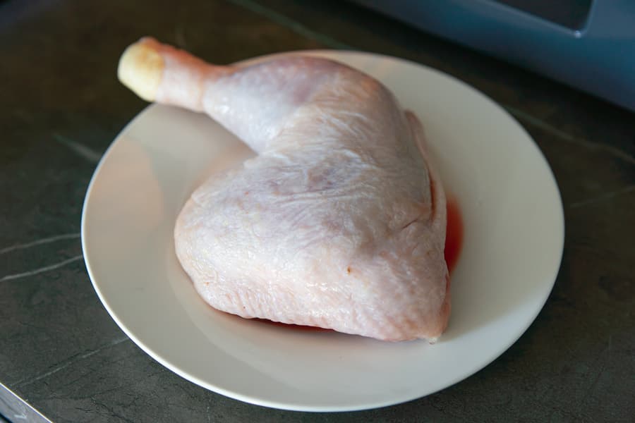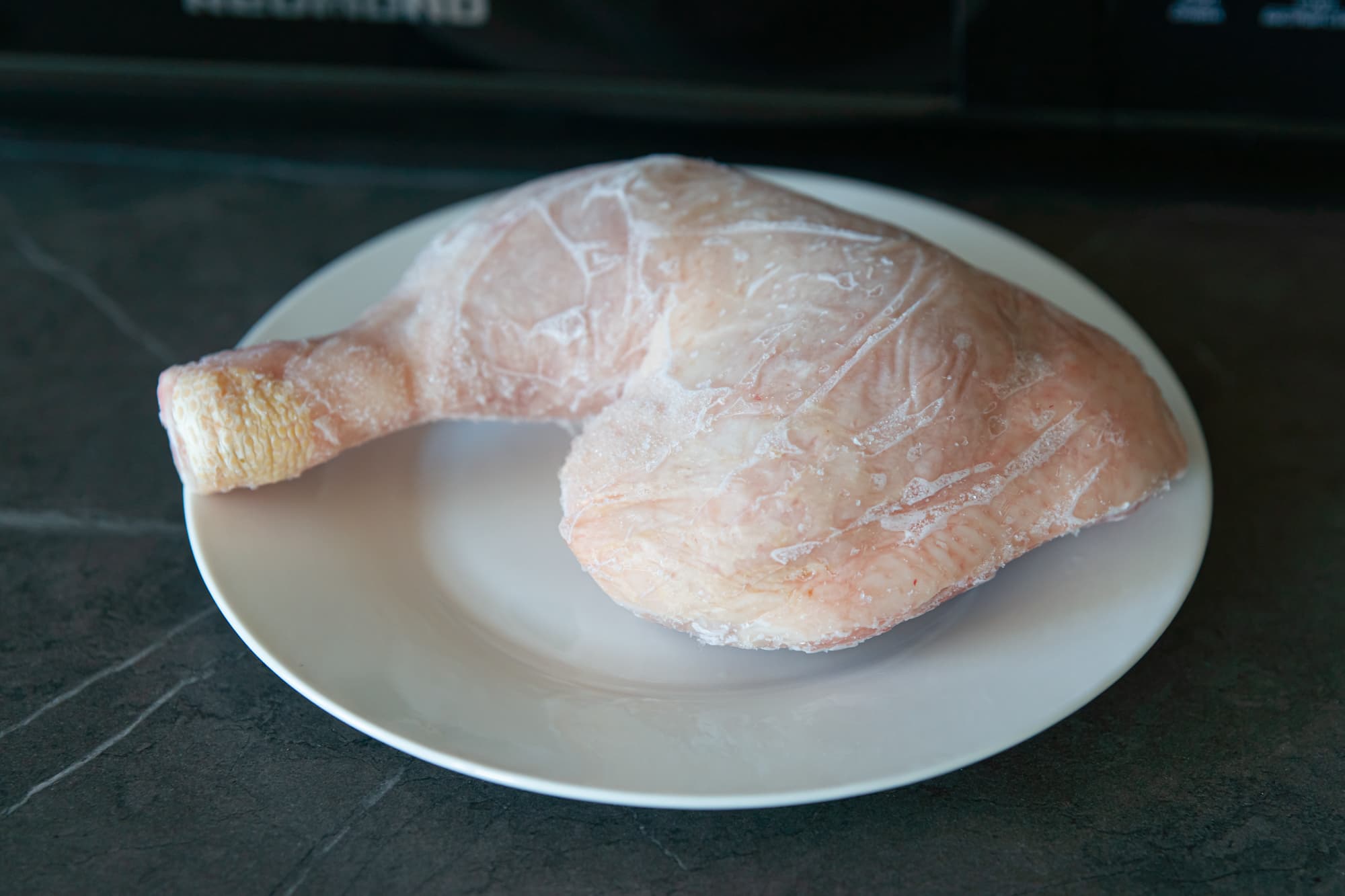 Кроме фарша, мы решили разморозить куриный окорочок весом 500 г.