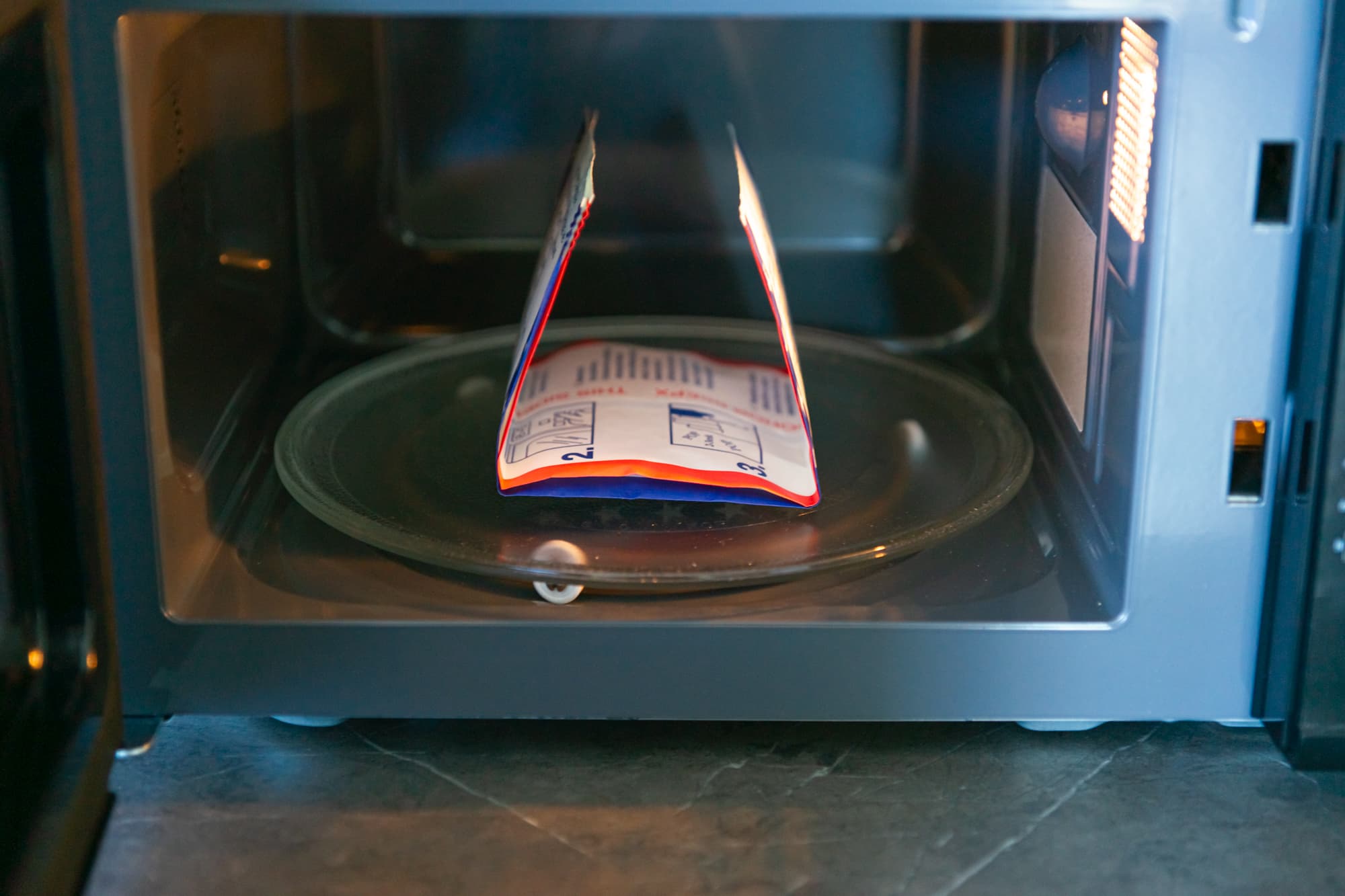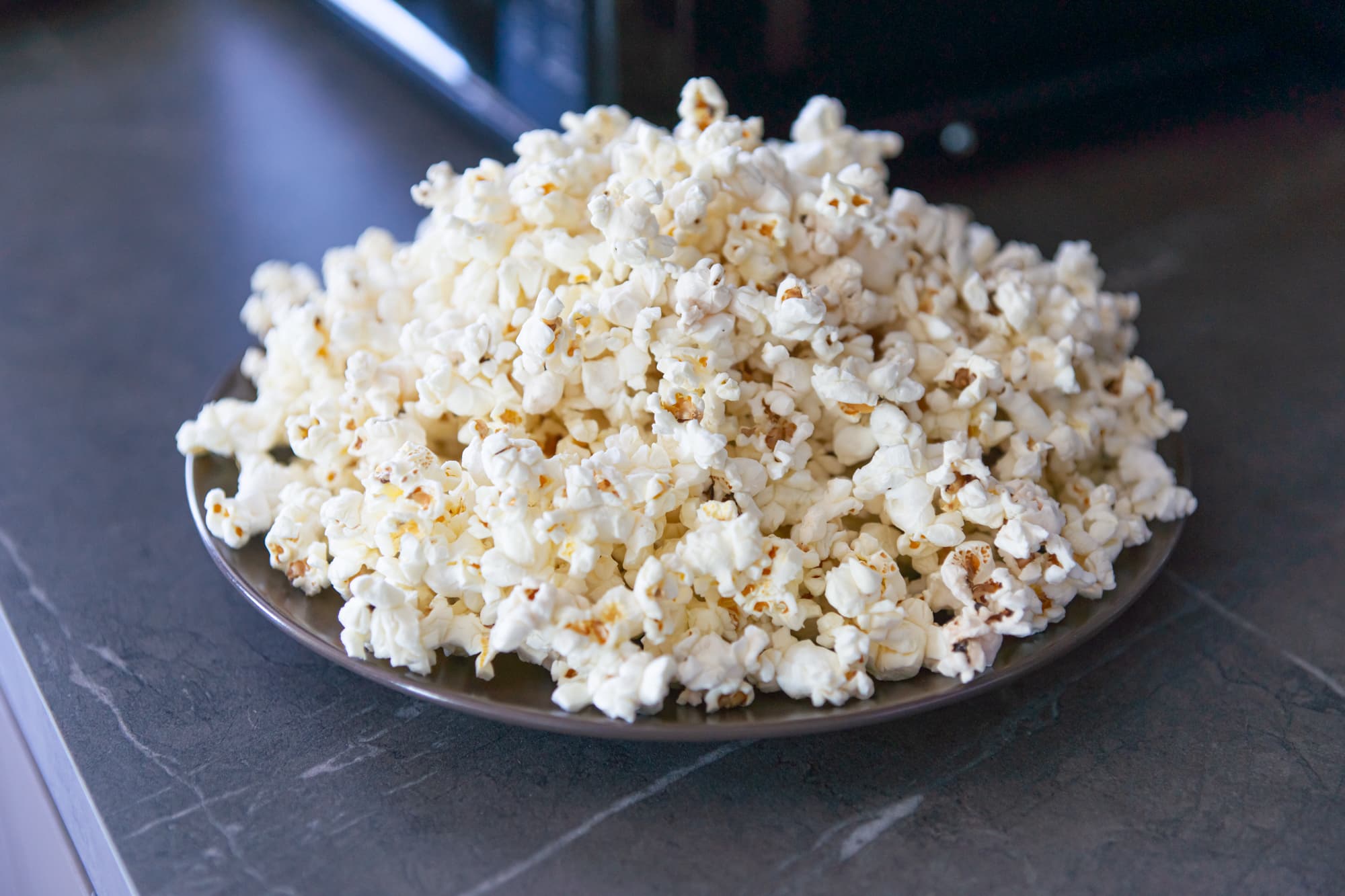 Мы использовали пакет попкорна весом 85 г. Специального авторежима для попкорна в этой модели нет, поэтому, ориентируясь на стандартные рекомендации на упаковке, мы установили мощность микроволн 100% на 3 минуты.