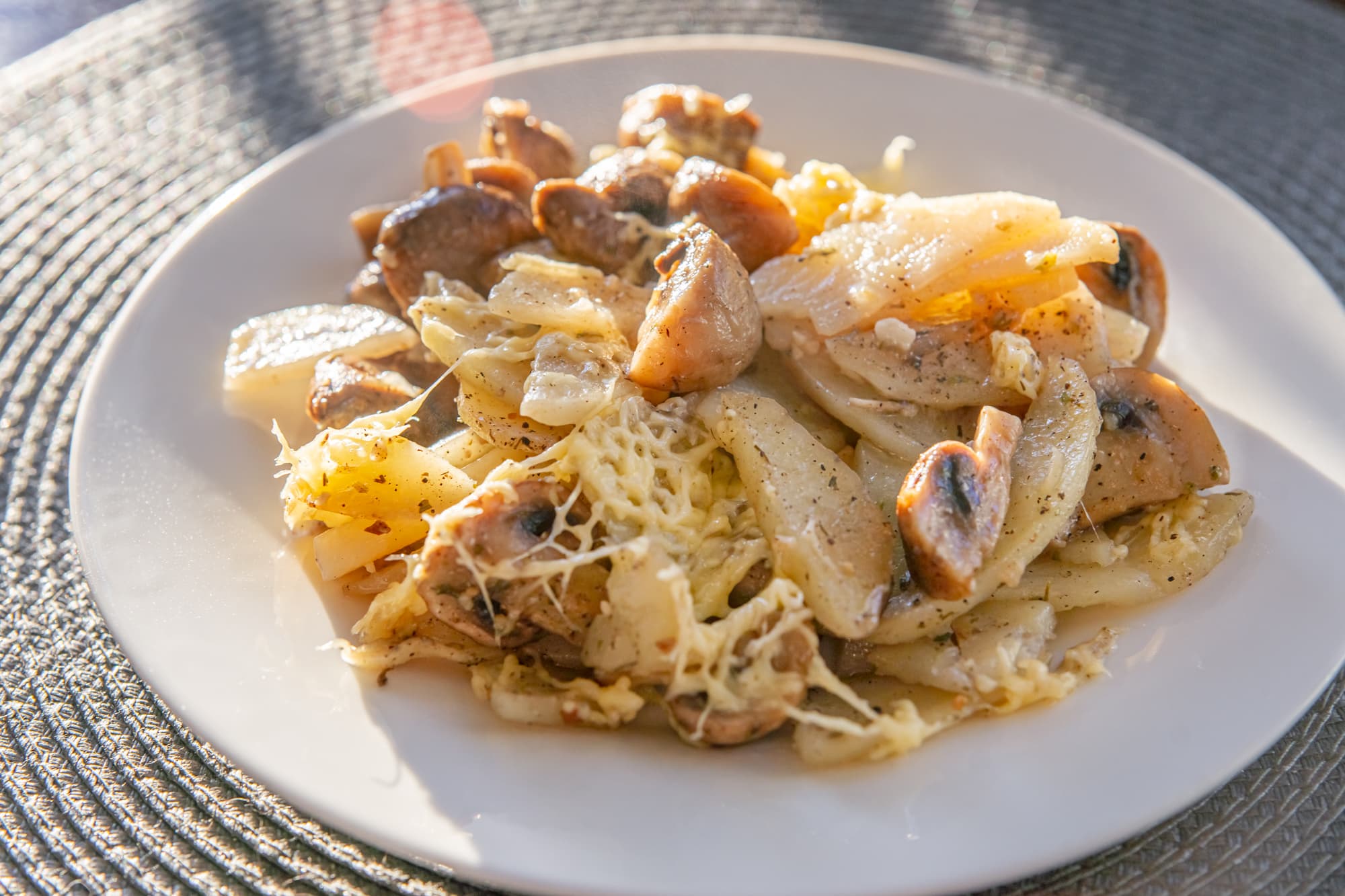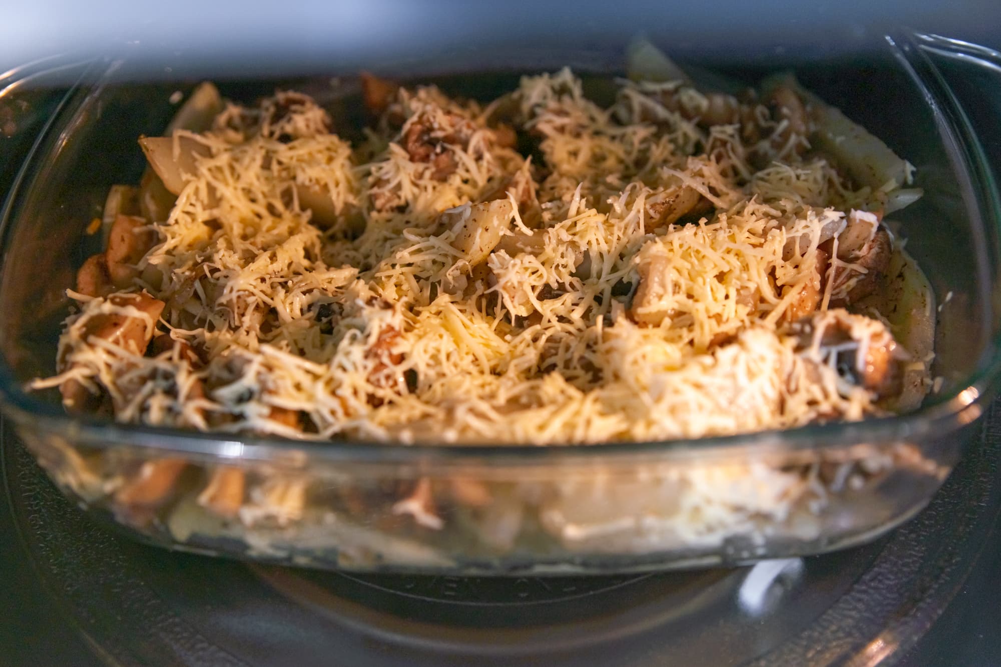 За это время сыр расплавился, а картошка полностью приготовилась.