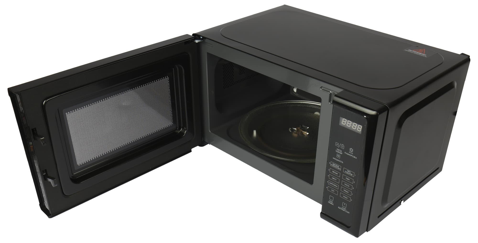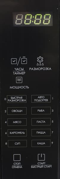 Объем камеры не самый большой, но достаточный для большинства стандартных задач. Для удобства управления все автоматические программы на панели управления подписаны, режимы в целом адекватно рассчитывают параметры разморозки и приготовления по весу и позволяют разгрузить пользователя от лишних размышлений о настройках. Функции быстрого старта на максимальной мощности, отсрочки запуска, возможность установки двухэтапного приготовления и блокировки панели дополняют общий комфорт при использовании прибора.