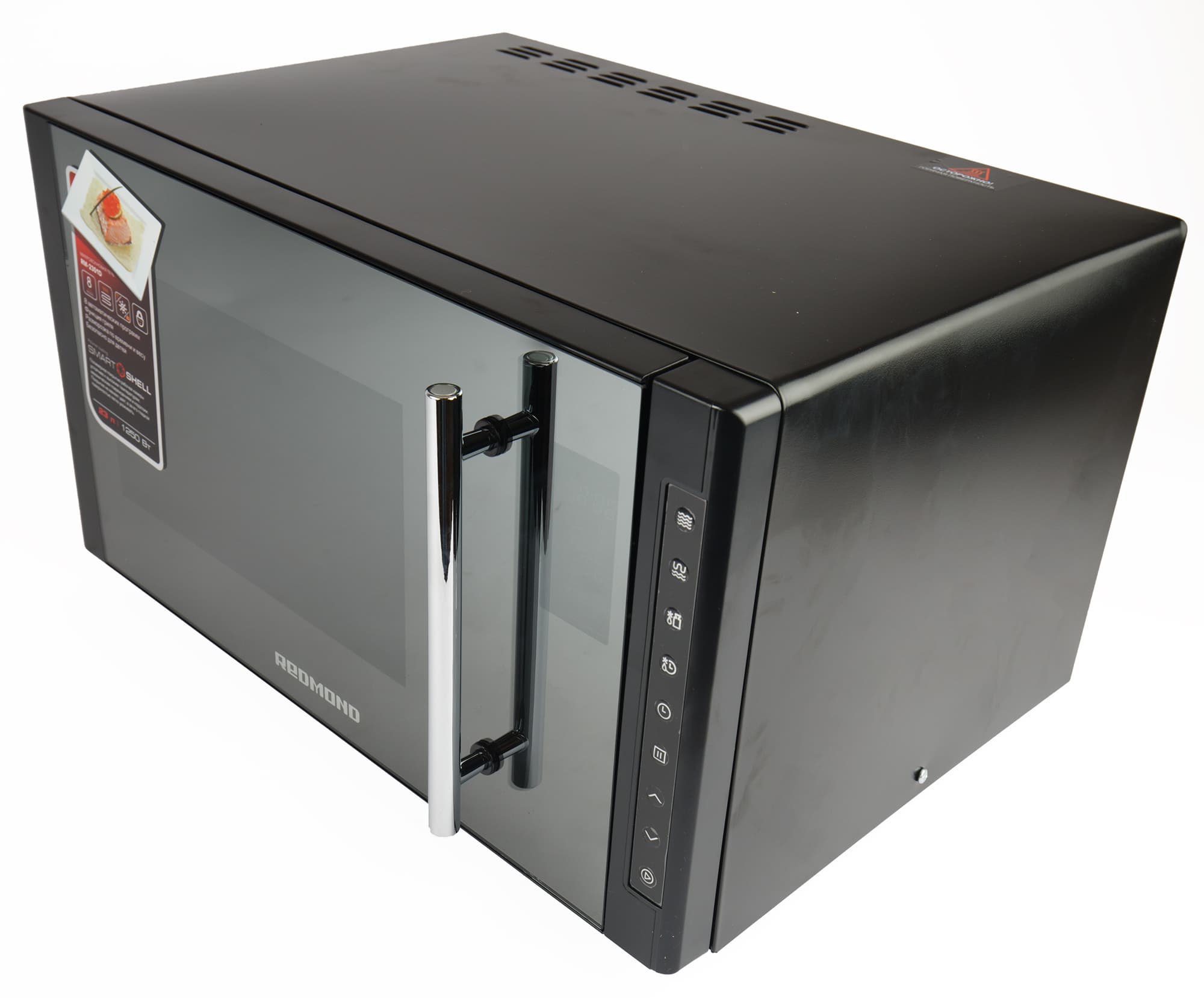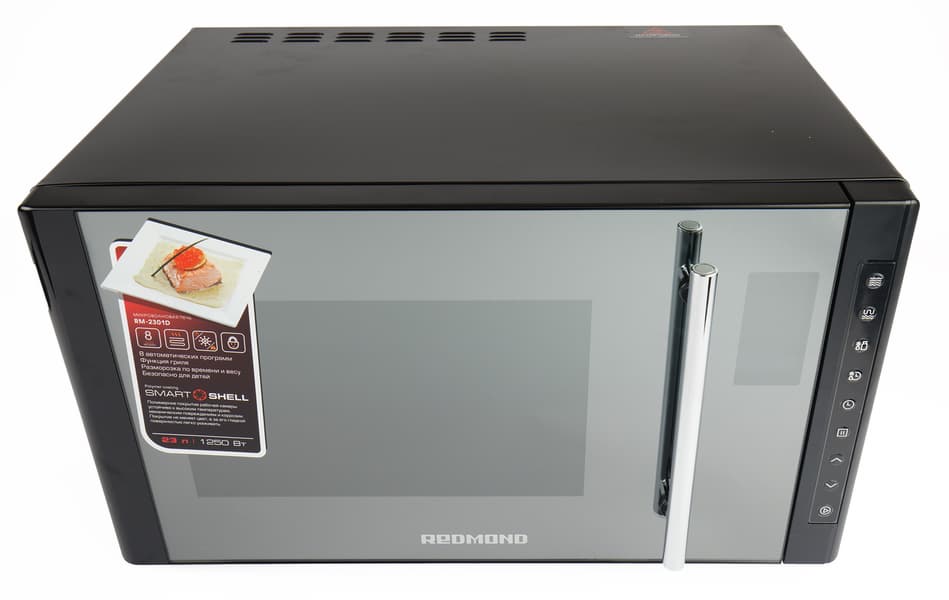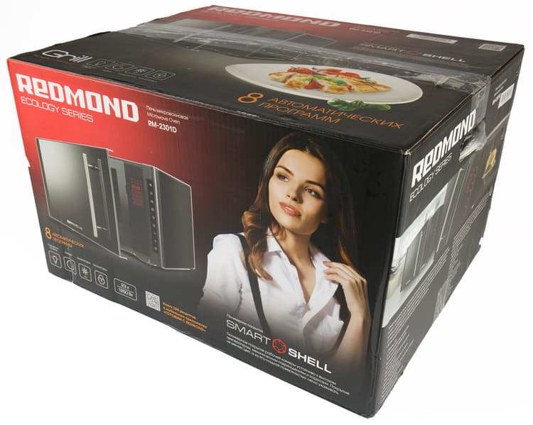 Не так давно мы рассматривали микроволновую печь Redmond RM-2302D, а теперь перед нами очень похожая модель — Redmond RM-2301D. Она еще больше приближена к идеалу: гриль в наличии.