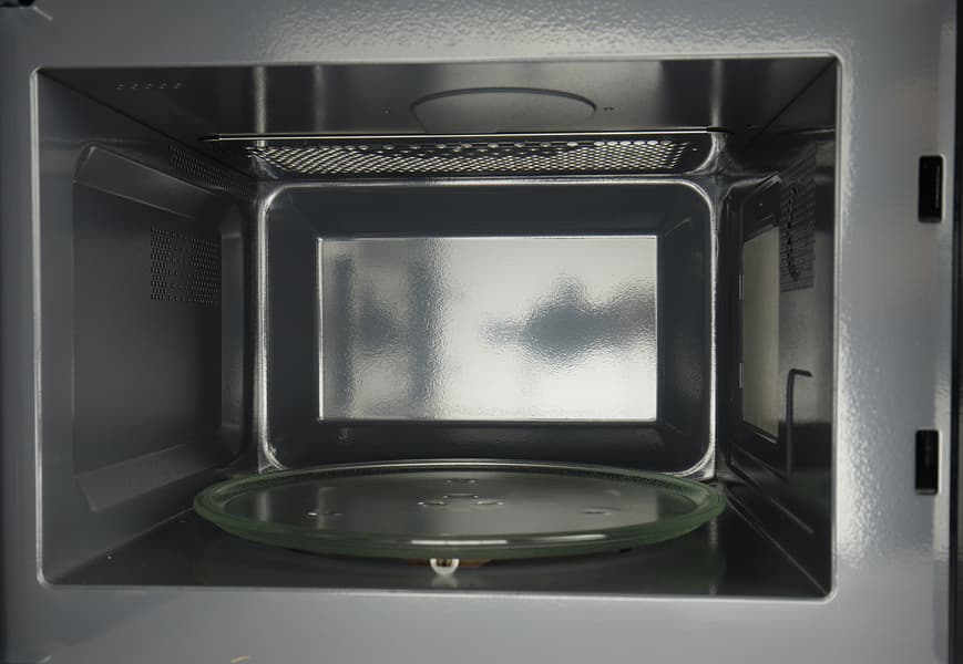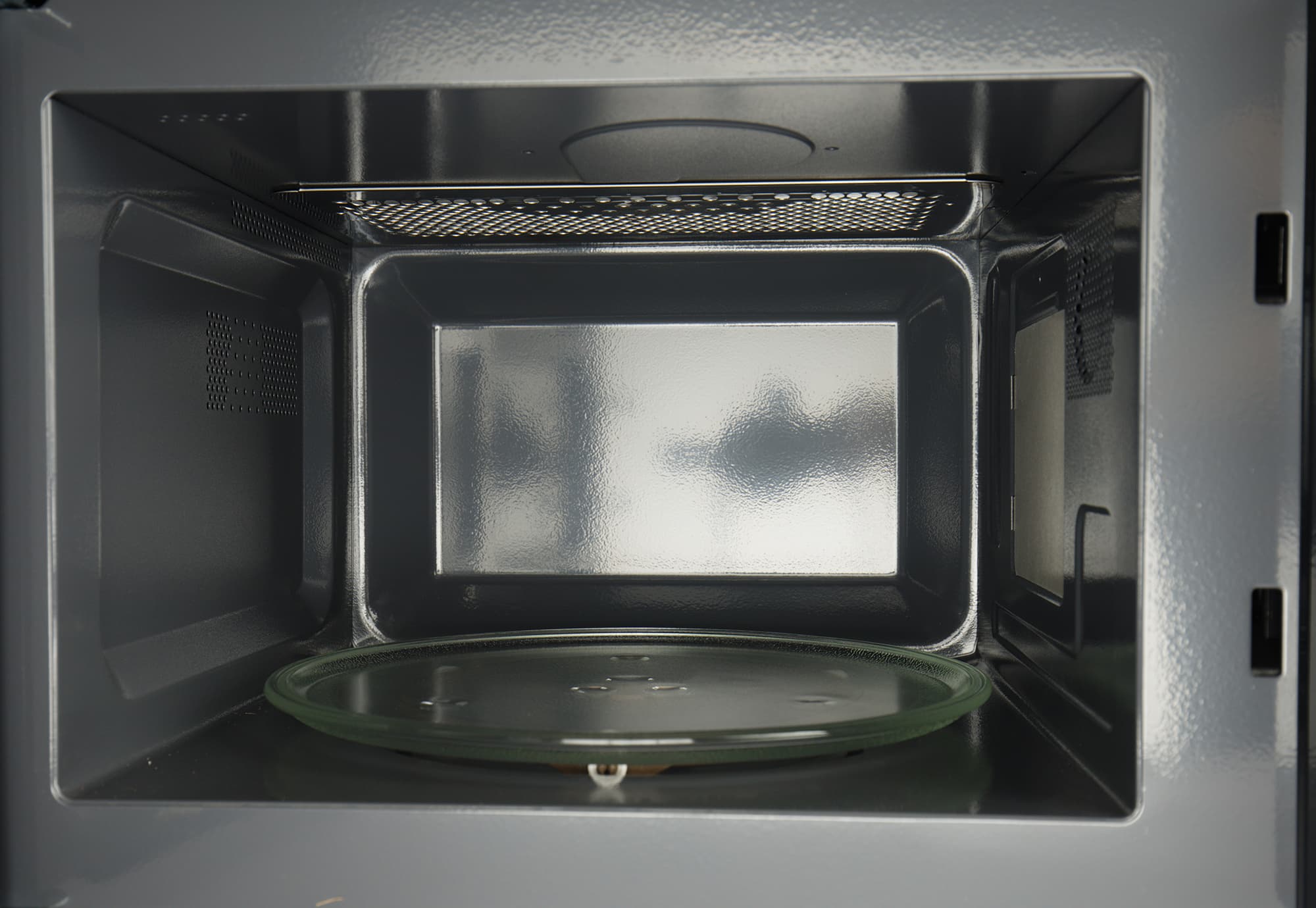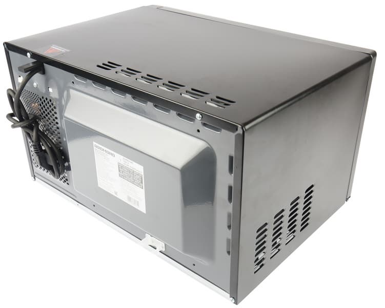 Внутренняя камера, согласно информации от производителя, обработана полимерным покрытием, на вид похожим на обычную эмалевую краску темно-серого цвета. Интерьер классический: в центре располагается стеклянное блюдо, приводимое в движение поворотным механизмом и опирающееся на роликовое кольцо. По центру правой стенки — магнетрон, чуть выше и правее находится лампа подсветки камеры, а керамический гриль скрывается за металлической решеткой на «потолке».