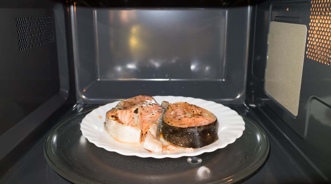 Когда прозвучали сигналы завершения работы, извлекли рыбу из микроволновой печи.