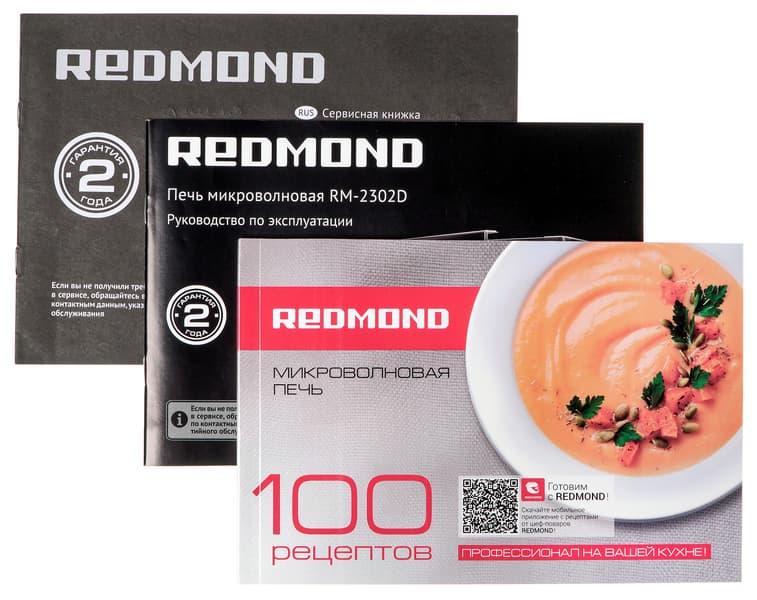 В целом, меры безопасности и правила эксплуатация микроволновой печи Redmond RM-2302D ничем не отличаются от типовых для СВЧ-печей. То же самое касается выбора посуды и подготовки продуктов.