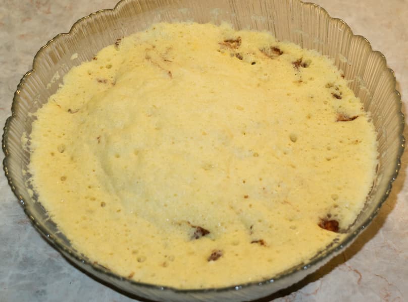 Готовили на мощности в 50% в течение 15 минут. Затем увеличили мощность до максимума и выпекали еще 6 минут.