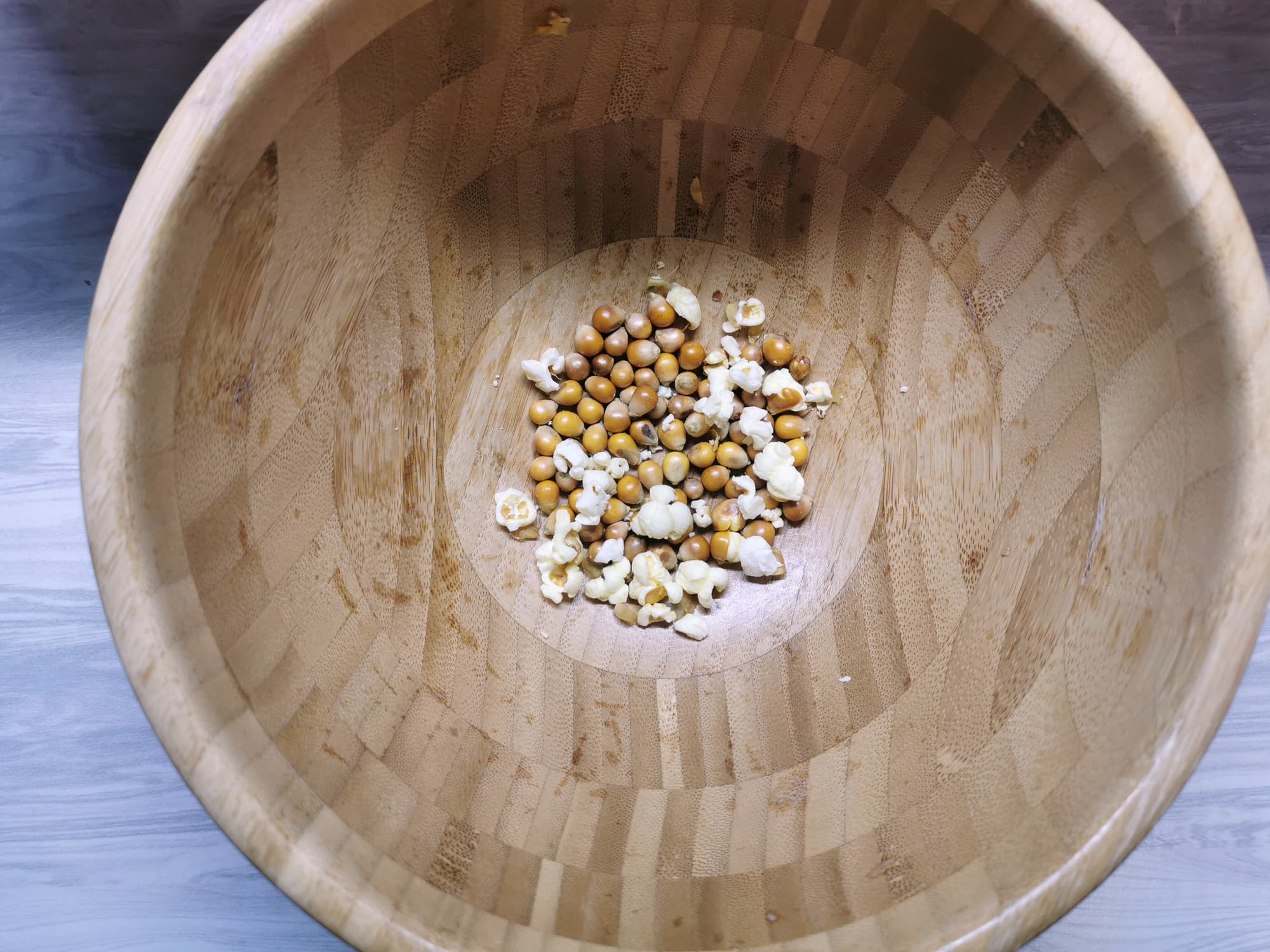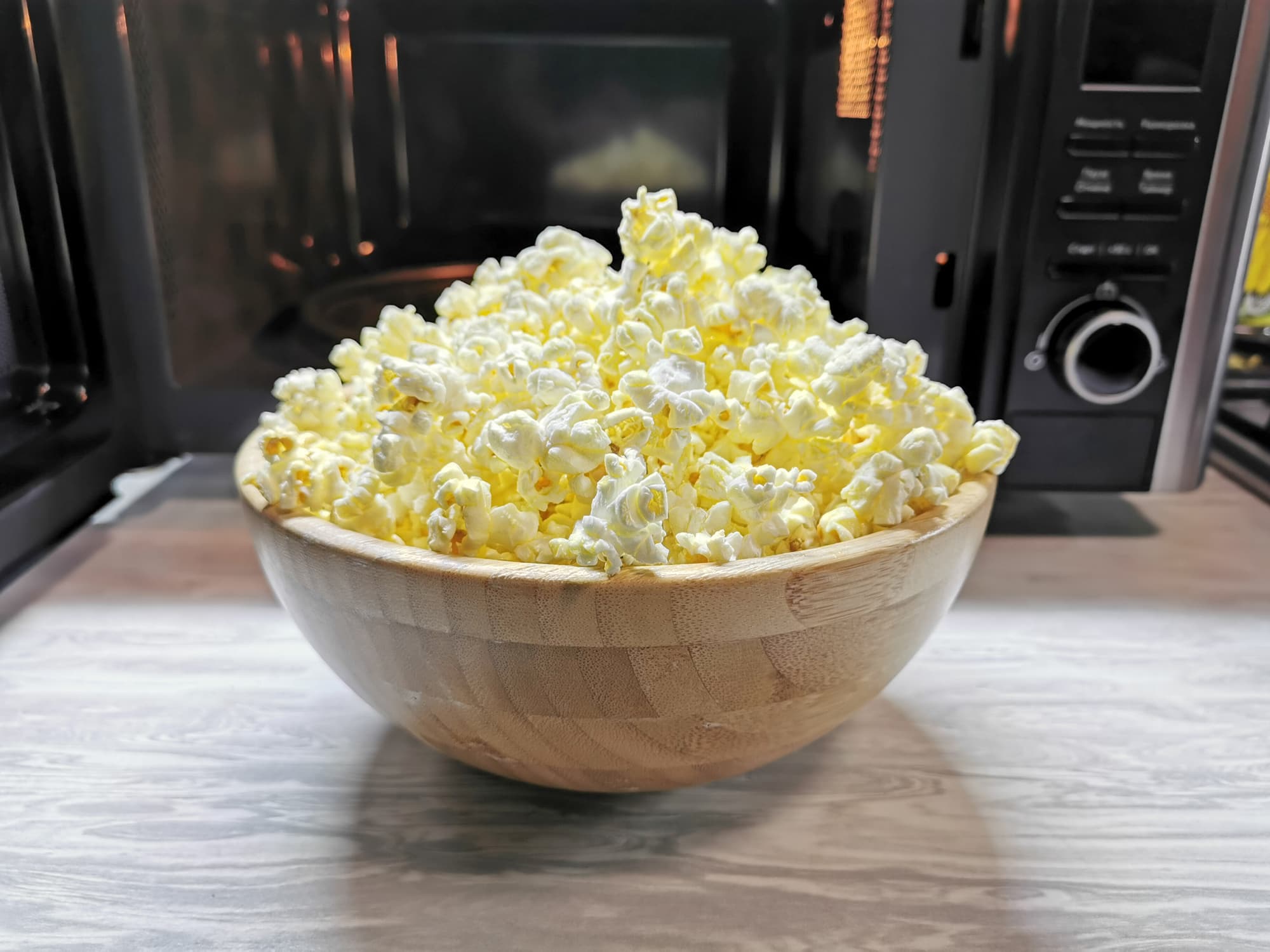 Спустя указанное время мы получили большую порцию попкорна, а впоследствии обнаружили на дне совсем небольшое количество нелопнувших зерен, что говорит о правильном соотношении времени и мощности в данной автопрограмме.