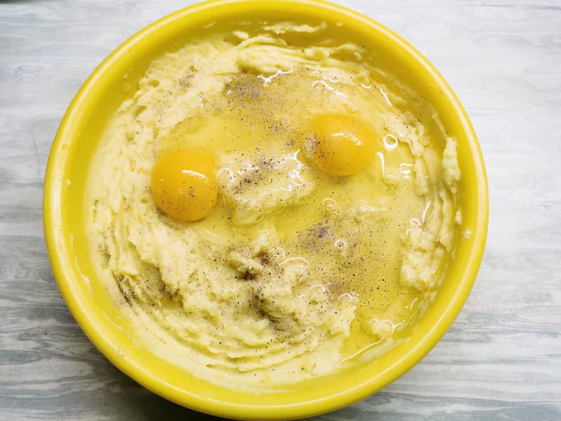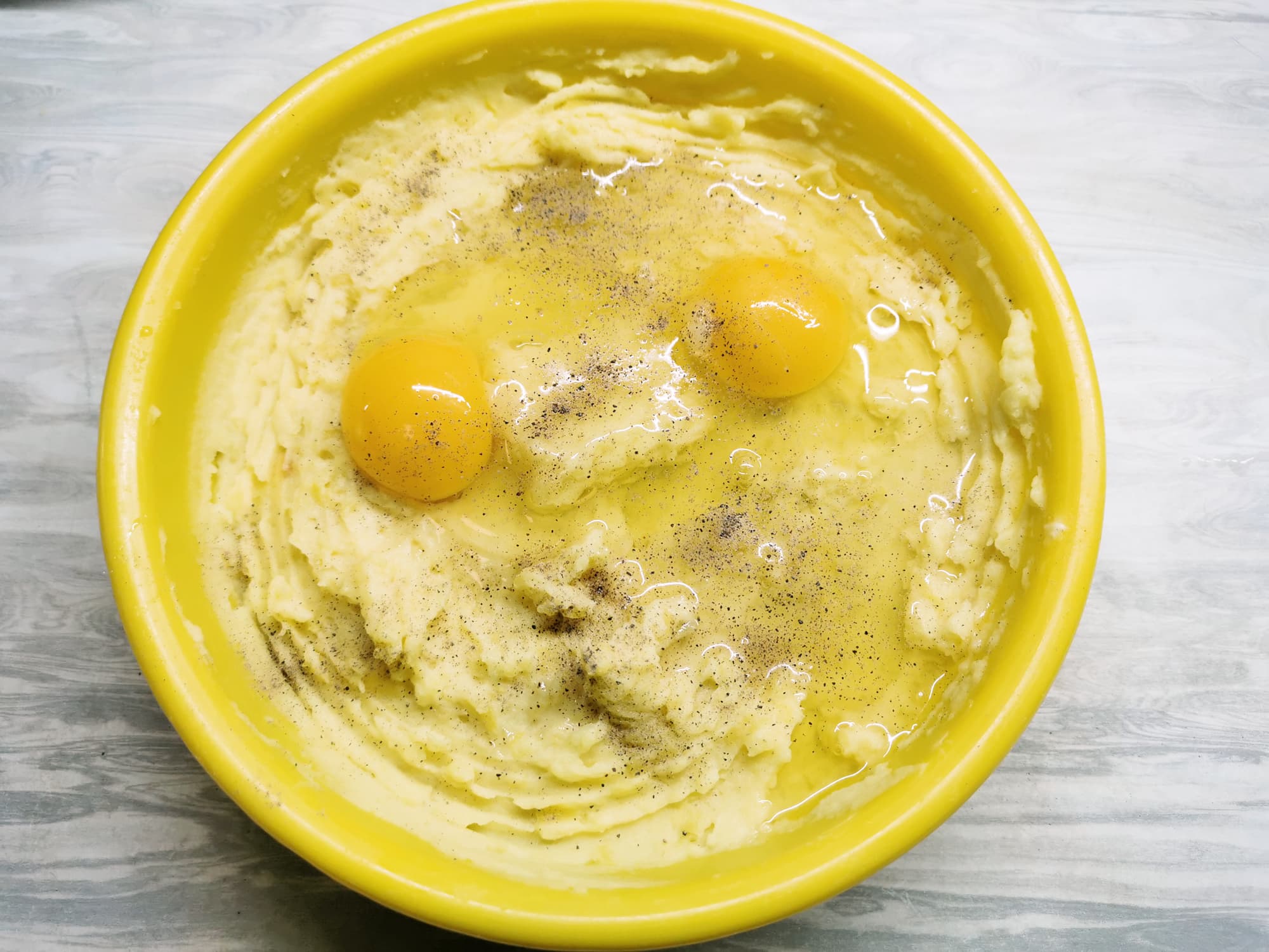В пюре мы добавили черный молотый перец и 2 куриных яйца.