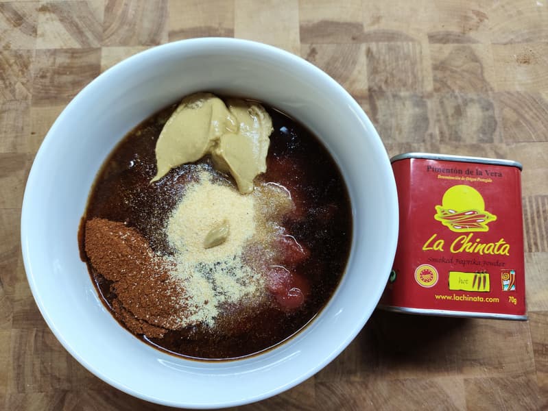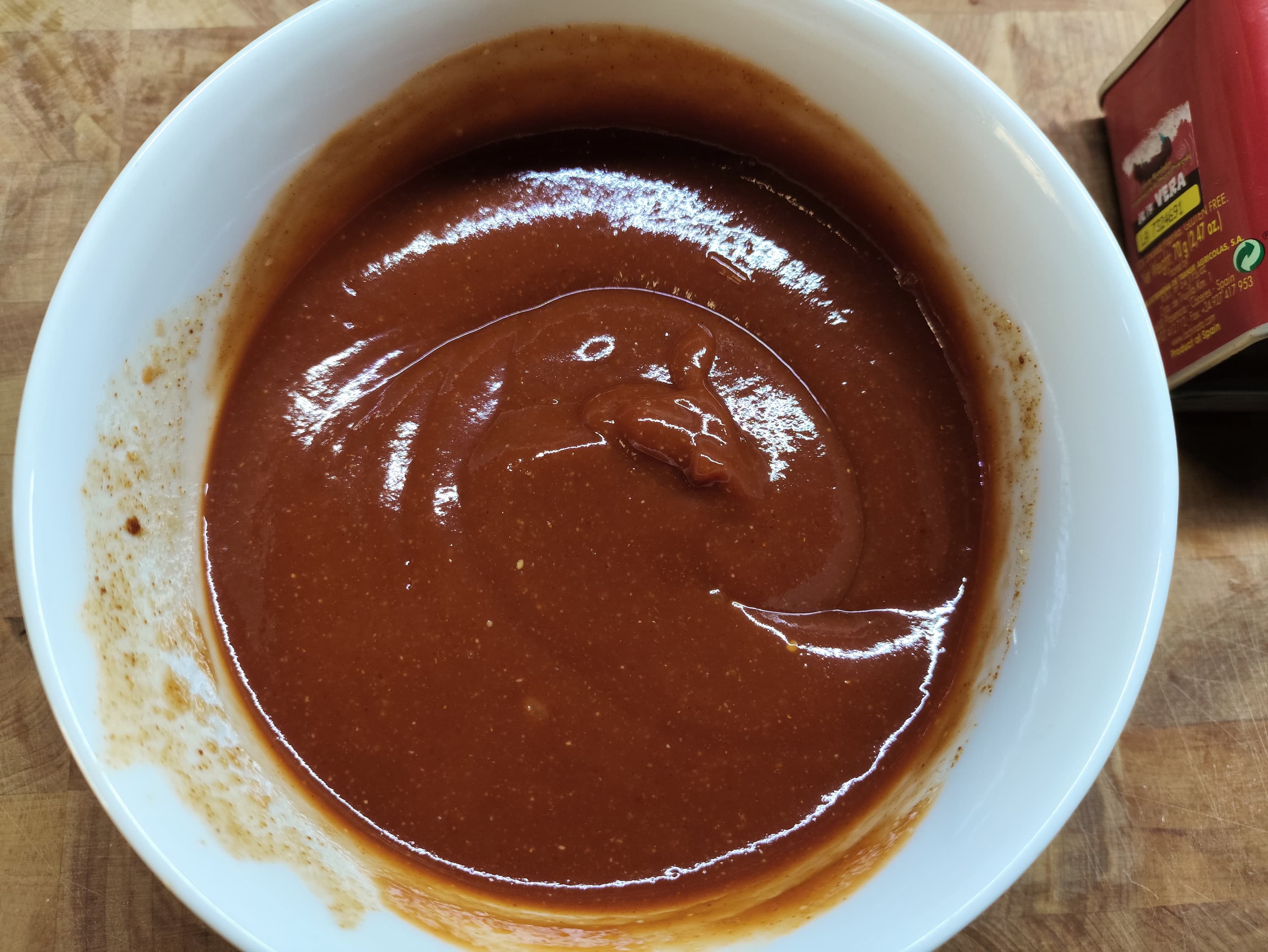 Чтобы получить классический вкус барбекю, мы взяли около 250 мл кетчупа, 3 столовых ложки коричневого сахара, 1 столовую ложку яблочного уксуса и столько же вустерского (ворчестерширского) соуса, по 2 чайных ложки копченой паприки и горчицы, 1 чайную ложку чесночного порошка и по ½ чайной ложки зиры и соли.