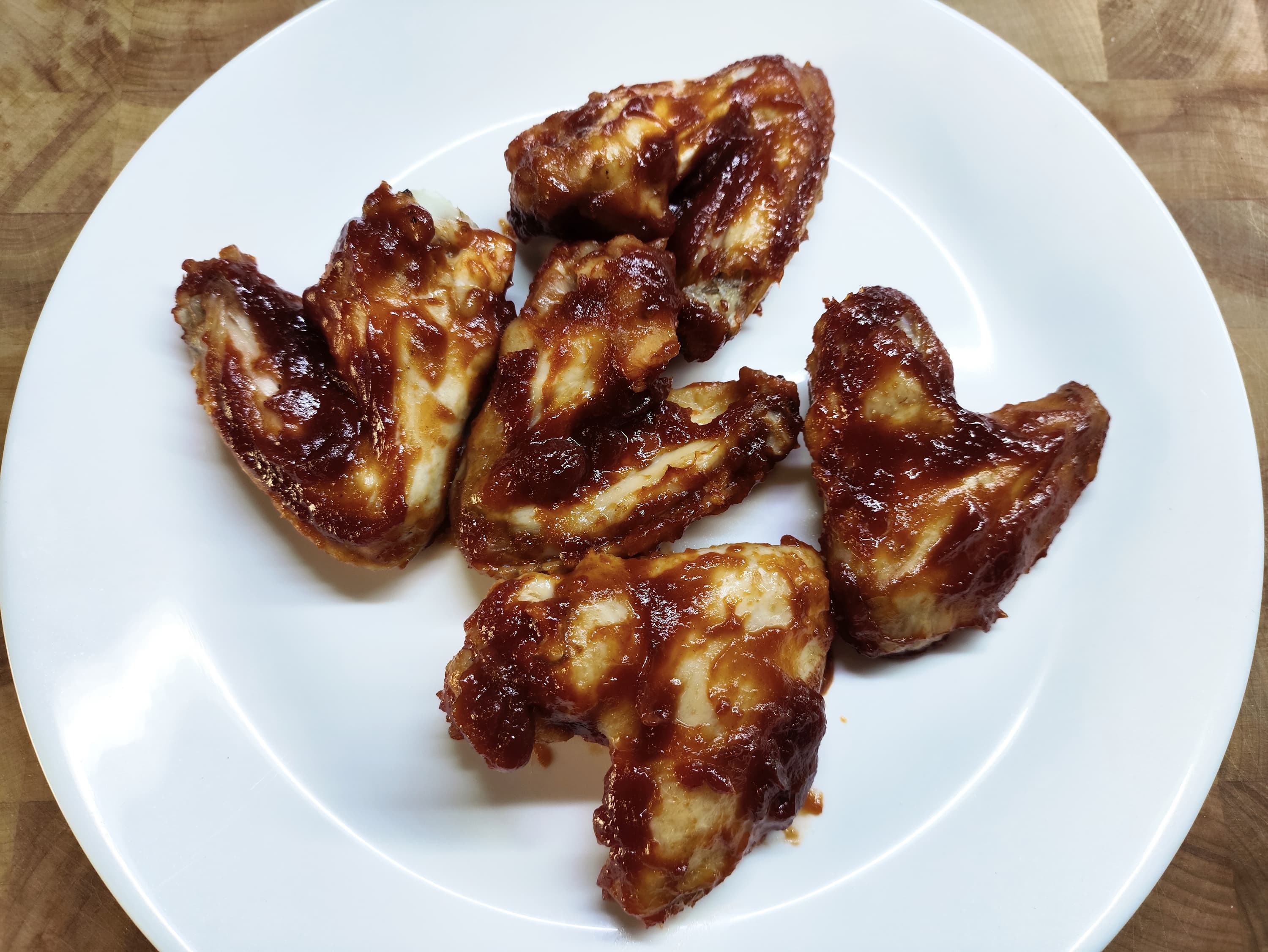 В итоге быстро и легко получаем отличные крылышки барбекю. Если есть готовый соус, то на весь процесс приготовления будет потрачено не более 15-20 минут! Если соуса нет — то чуть дольше (время в основном зависит не от скорости приготовления соуса, а от того, насколько хорошо вы ориентируетесь в своем ящике для хранения специй).