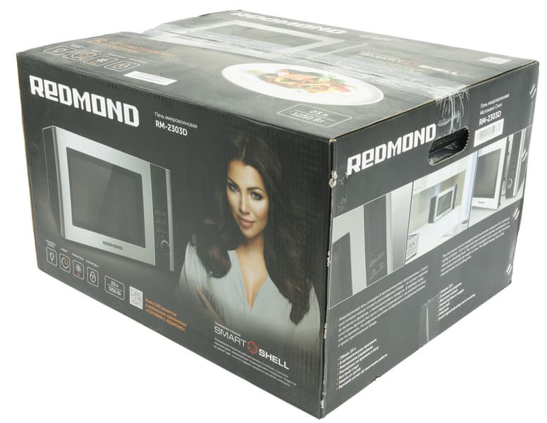 У Redmond RM-2303D отсутствуют гриль и режим конвекции, поэтому она идеально подойдет тем пользователям, для которых эти возможности микроволновой печи не являются значимыми. Данная печь станет верным соратником при использовании возможностей микроволн по максимуму и каждый день — для разморозки, подогрева и приготовления блюд разной сложности от попкорна до супа (и даже сложнее!).