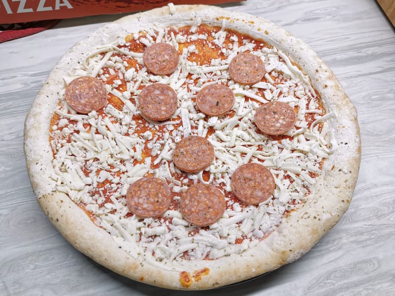 Одним из 8 автоматических режимов микроволновой печи является режим «Пицца», рассчитанный на пиццу весом 200 или 400 г. Мы решили испытать данную программу и взяли замороженную пиццу весом 360 г.