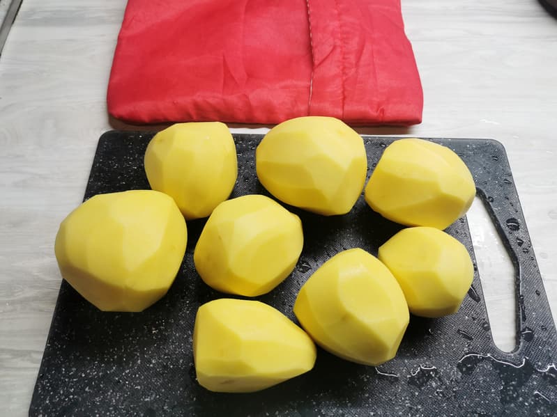 Для теста автопрограммы «Картофель» мы подготовили пакет для запекания, взяли несколько клубней картофеля, помыли и очистили их от шкурок.