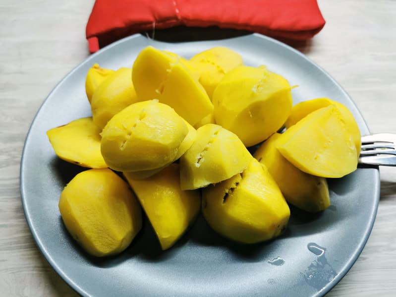 Вес очищенного картофеля составил 940 г и не подошел под доступные варианты автопрограммы (100, 200, 300, 400, 500, 600 г), поэтому мы разделили его на 2 порции — 600 и 340 г.