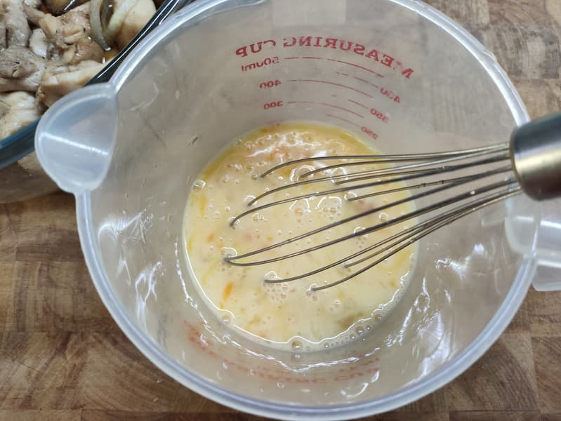 Наш второй эксперимент — оякодон: блюдо японской кухни, домбури с омлетом, в которое добавлено куриное мясо без кожи и костей и лук (также может включать грибы шиитаке). Название блюда буквально означает «родитель и ребенок»: под родителем подразумевается курица, а под ребенком — яйцо; «дон» — сокращение от «домбури», что, в свою очередь, переводится как чаша.