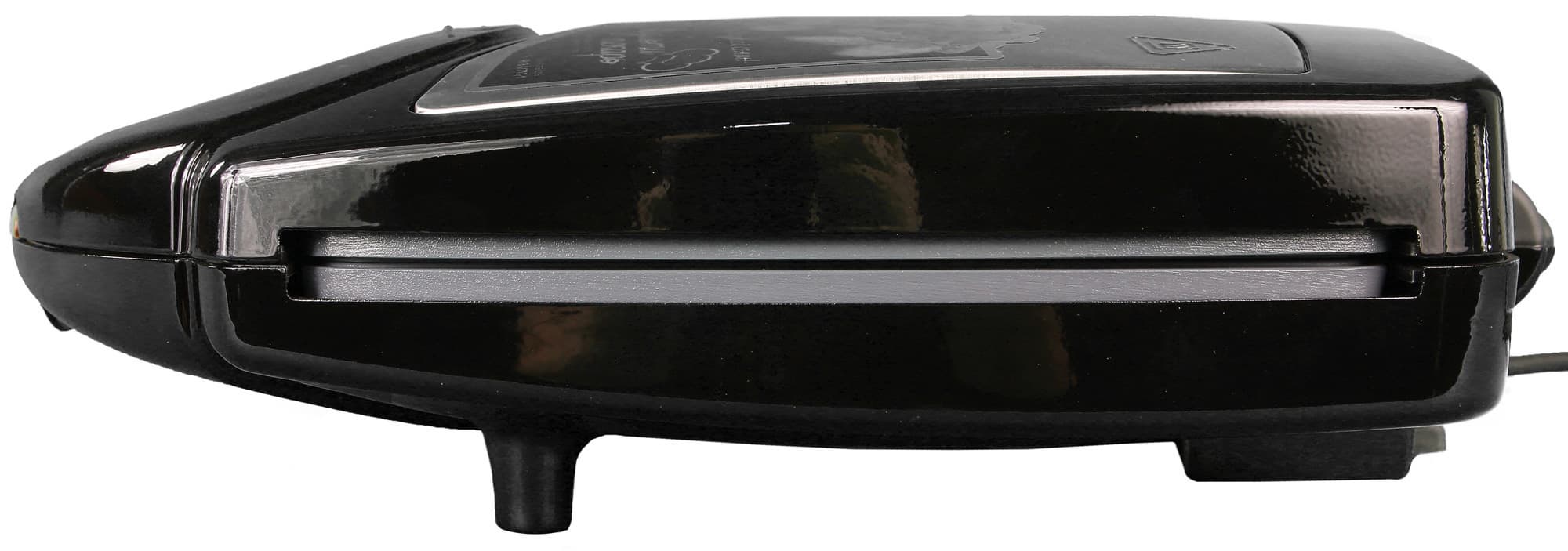 На наружной части верхней панели имеется пластиковая откидная деталь малого размера в форме полумесяца. Откидывать ее необходимо в том случае, если мультипекарь предполагается использовать в раскрытом на 180° виде: тогда эта деталь выступает в роли опоры.