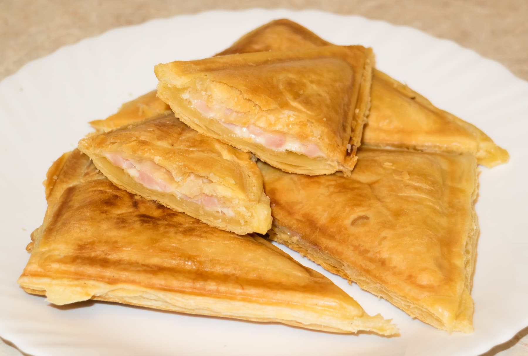 Слоеные пирожки с ветчиной и сыром