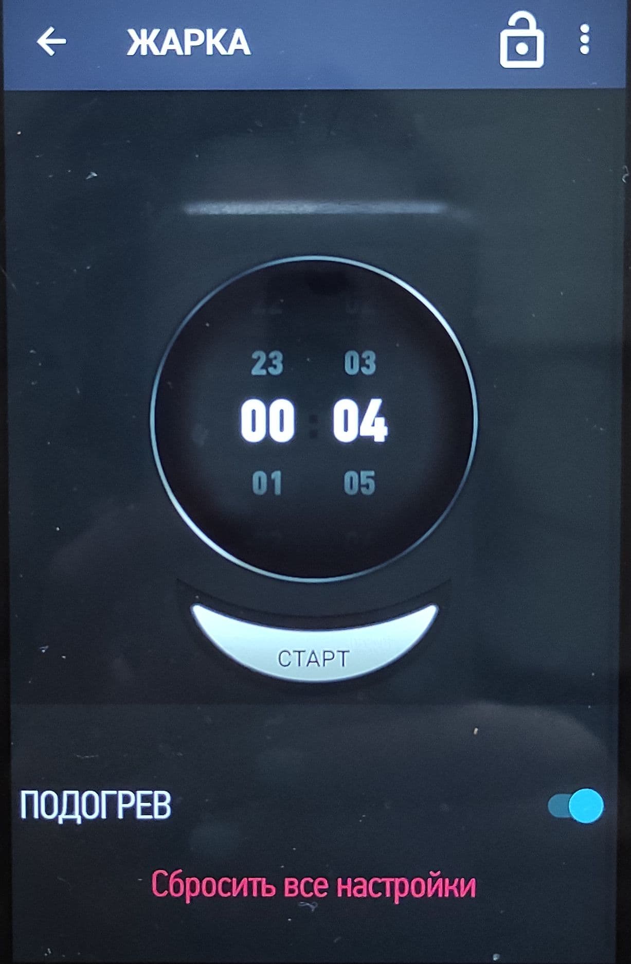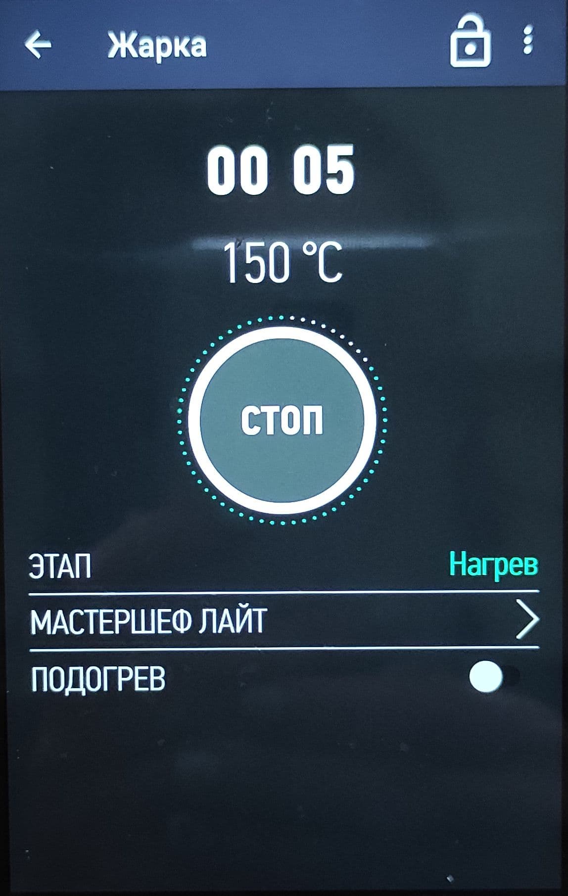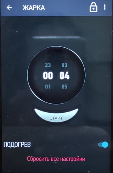 Мы проверили, как запускается и отключается прибор через приложение — все команды выполнялись моментально, а температуру и время можно было корректировать в процессе приготовления. Рабочее окно управления моментально обновляло изменение статуса: переход от разогрева к непосредственно работе программы, включение подогрева и пр.