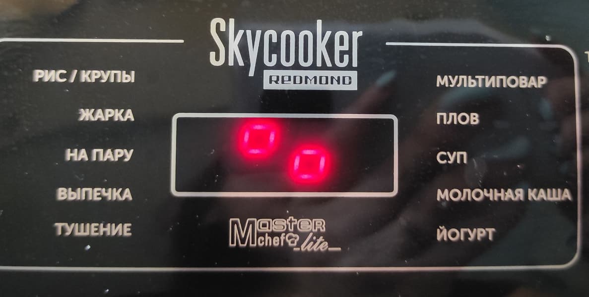 Традиционная логика Redmond работает и здесь: автоматические программы можно запускать, задавать желаемое время работы и прерывать, а функция «Мастершеф Лайт» позволяет менять настройки времени и температуры прямо в процессе работы. Единственный сюрприз, который нас поджидал, это отсутствие программы «Экспресс», упомянутой в инструкции. Возможно, модель RMC-961S датчиком выкипания воды не оснащена.