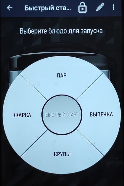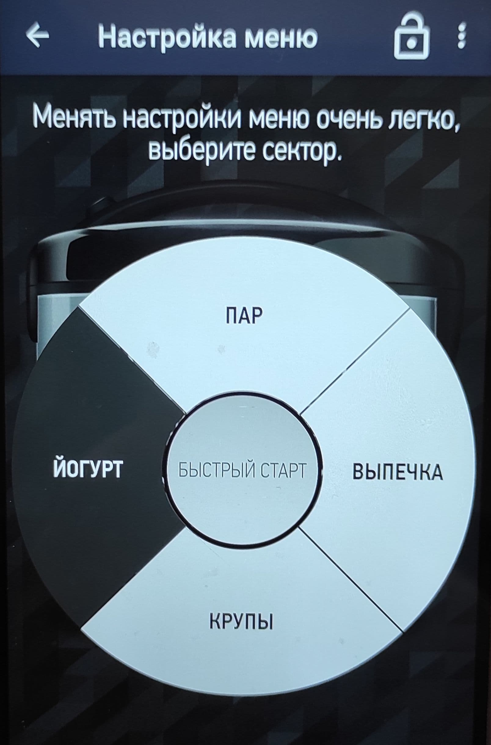 Если перейти в настройки через кнопку в верхнем правом углу, то можно задать любые четыре программы из имеющихся в мультиварке.