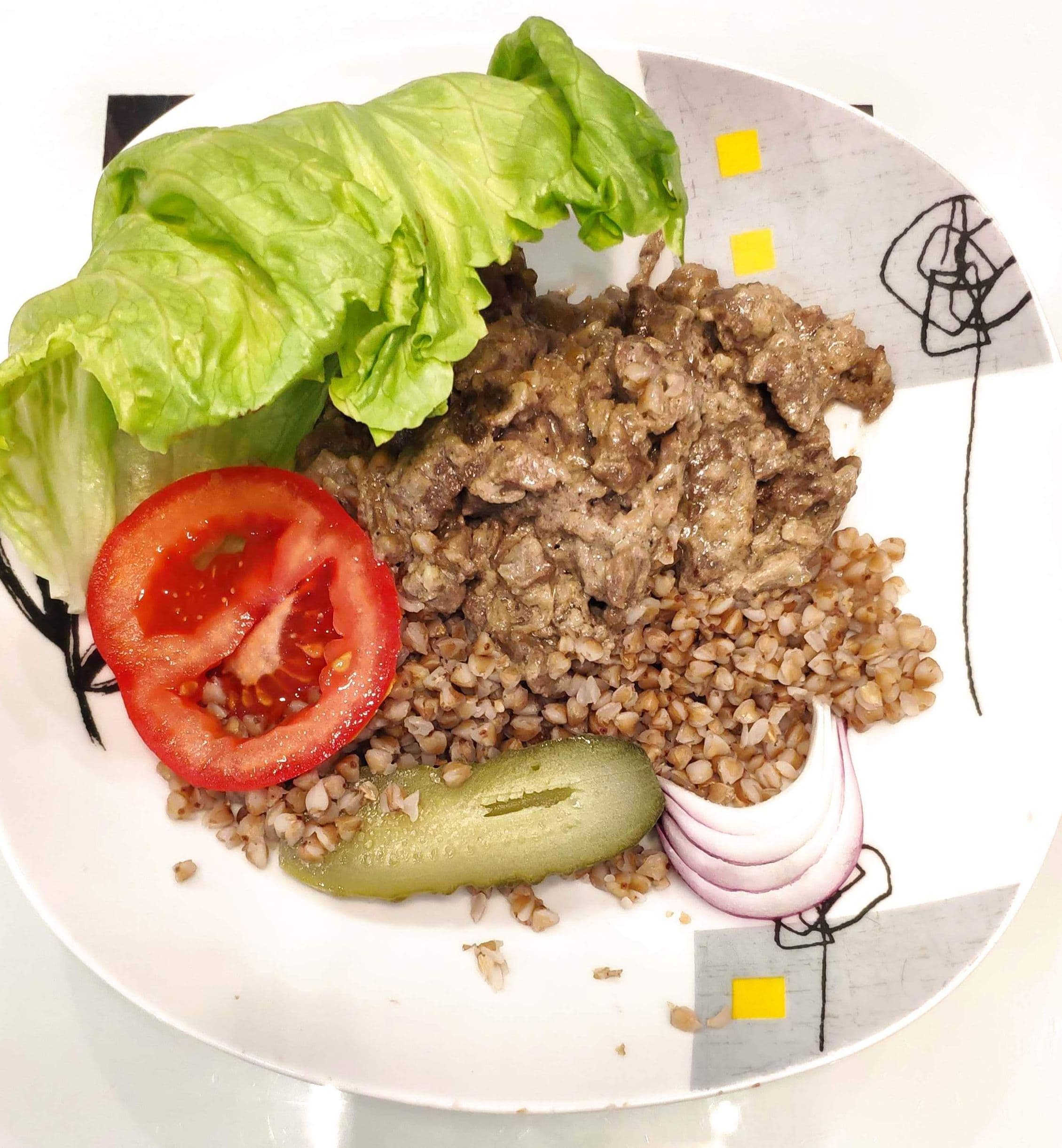 Мы решили, что гречка прекрасно подойдет к говядине, и приготовили бефстроганов по рецепту, слегка изменив его под свои представления о прекрасном. Мы нарезали 300 г вырезки на положенные мелкие брусочки и 120 г лука соломкой. В этом время чаша мультиварки нагревалась вместе с растительным маслом на режиме «Жарка». В этот морозный день примерно 4 минуты ушли на достижение нужной температуры, о чем сообщил звуковой сигнал, а дисплей отобразил обратный отсчет. Сначала мы положили в чашу лук, через 5 минут добавили мясо и регулярно помешивали продукты лопаткой. За 5 минут до окончания требовалось добавить 400 г сметаны и специи по вкусу, но мы решили, что лук еще недостаточно зарумянился, и добавили время приготовления. Когда его вид нас полностью удовлетворил, мы перемешали все ингредиенты и оставили на 5 минут под крышкой. Мясо получилось нежным и вкусным и было продегустировано в компании с гречкой.
