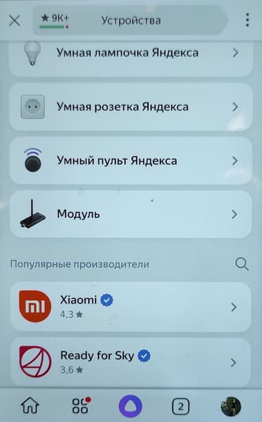 Можно пойти дальше и связать аккаунт гейтвея с Яндекс-аккаунтом, чтобы управлять техникой через голосовые команды Алисе. На тот же смартфон, куда мы установили Ready for Sky, было скачано приложение Яндекса с Алисой, и после авторизации в своем аккаунте мы совершенно бесплатно могли насладиться общением с голосовым помощником. Чтобы добавить мультиварку к списку управляемых устройств, мы зашли на главную страницу Яндекс и в списке приложений выбрали Устройства. Дальше пролистали предложения и среди популярных производителей увидели Ready for Sky.