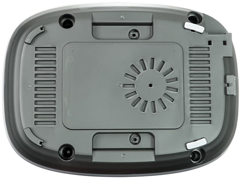 Крышка имеет съемную часть для легкой очистки, а также паровой клапан и уплотнительное кольцо, здесь все тоже традиционно. Стоит мультиварка устойчиво на небольших ножках, вентиляционные отверстия привычно находим на дне.