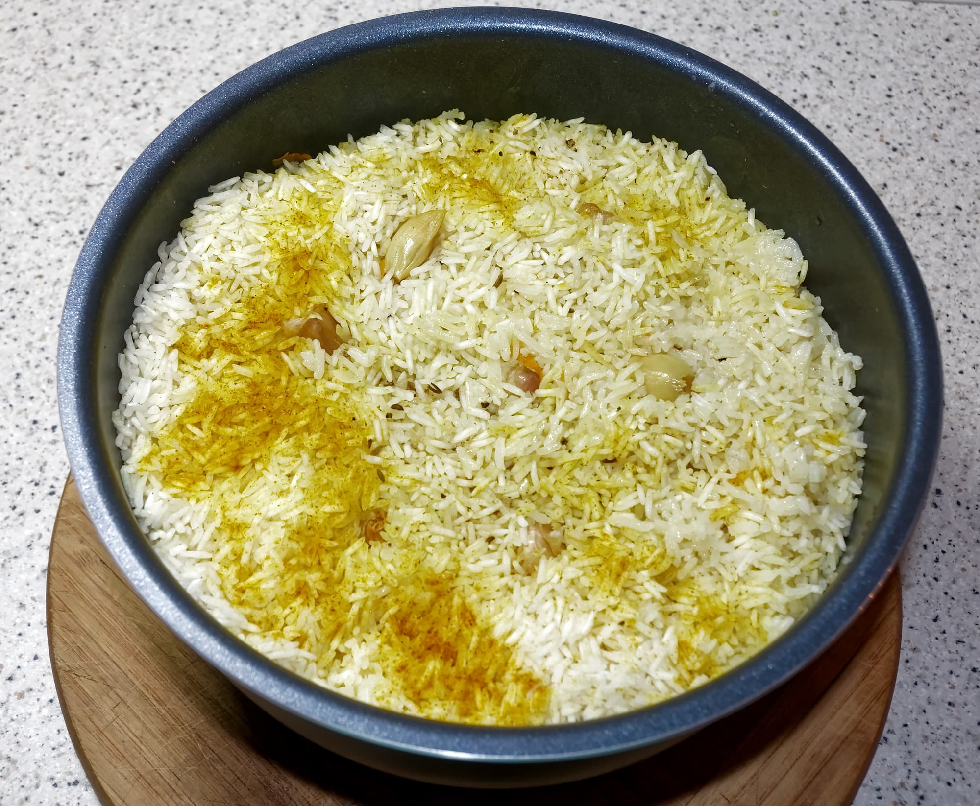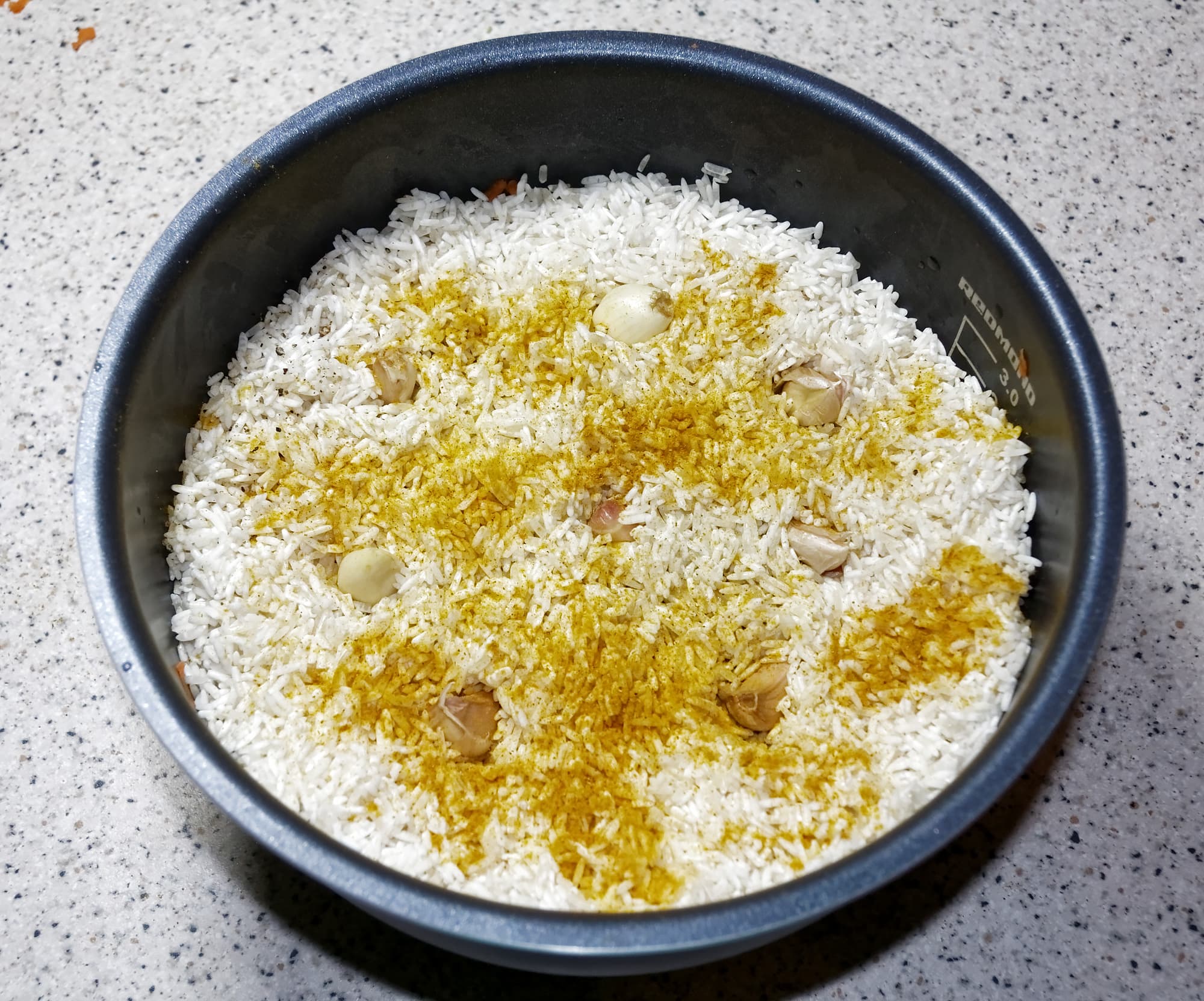 - специи, соль (мы взяли зиру для вкуса и карри для придания рису золотистого цвета).