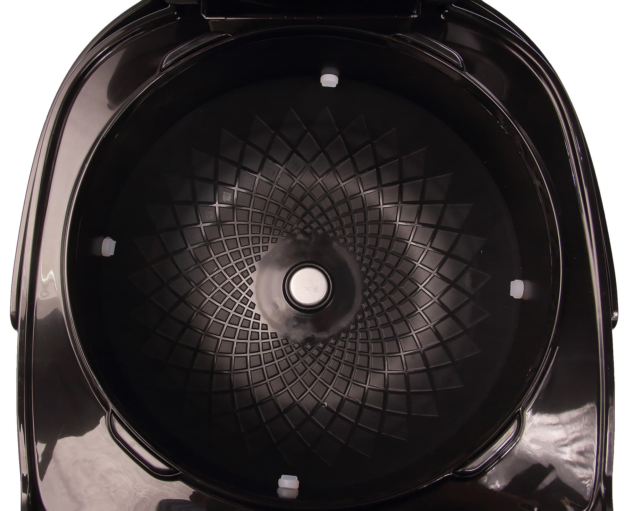 Наибольший интерес для нас представляет, конечно, внутренняя камера. Она у данной модели сделана из пластика с небольшими насечками-углублениями. Для фиксации чаши используются резиновые вставки. На дне камеры располагается подпружиненный датчик температуры. Такая пластиковая камера не только выглядит симпатичнее и современнее чем стандартная металлическая, но также более проста в уходе: в случае если конденсат попадет в камеру, его можно без труда удалить обычной кухонной тряпкой или губкой.