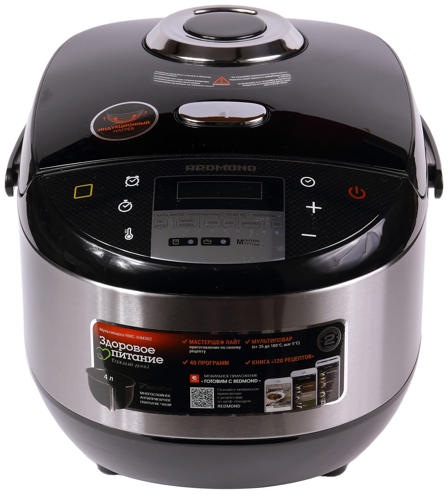 Индукционная мультиварка Redmond RMC-IHM302 — современный прибор с достаточным набором программ и возможностью самостоятельно задавать нужные для приготовления температуру и время. Индукционный нагрев экономит некоторое количество электроэнергии, однако не такое, чтобы это могло сколько-нибудь серьезно повлиять на бюджет. Также использование все еще инновационного для мультиварок индукционного нагрева немного выигрывает в сравнении с «традиционным» за счет малой инерционности, что делает особенно удобной обжарку в чаше.