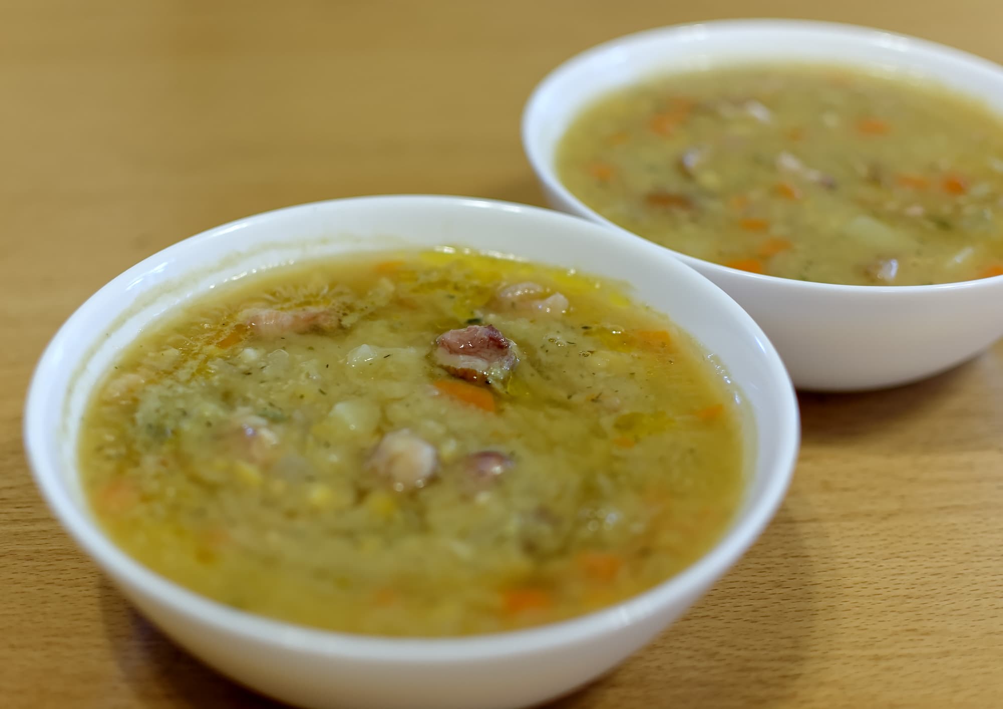 Затем мы воспользовались мультиповаром и поставили наш суп час повариться на температуре 90 градусов, при которой ничего не кипит и не убегает. Через час получили гороховый суп: вкусный и сытный.