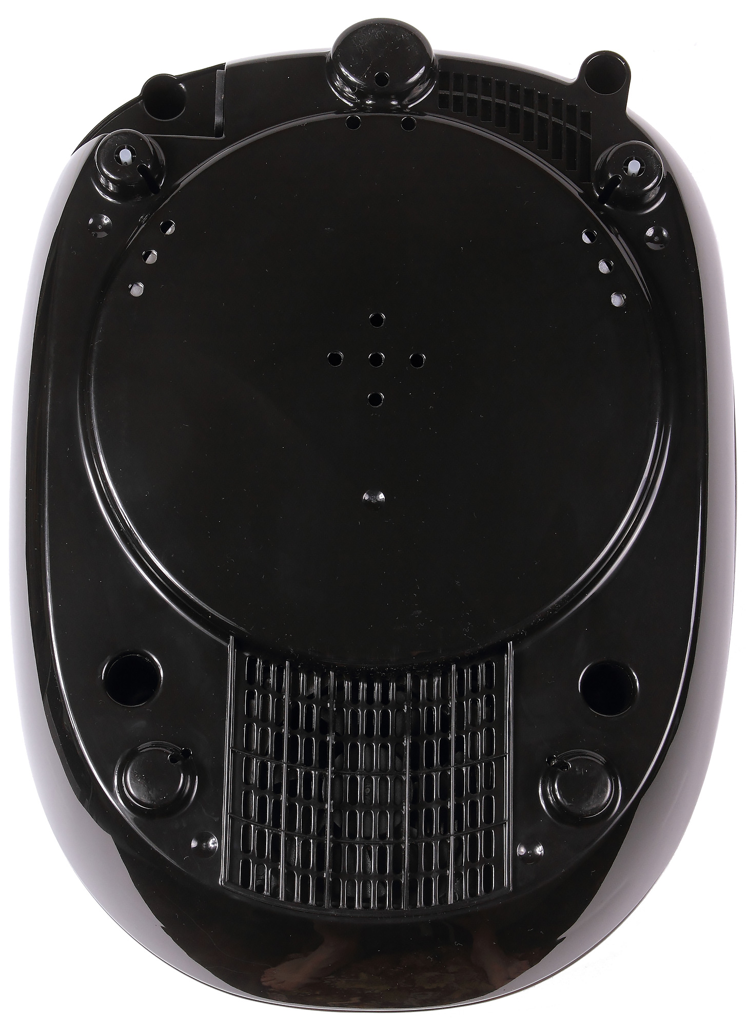 RMC-IHM302 — классическая мультиварка Redmond: корпус прибора сделан из пластика и нержавеющей стали, снизу расположены ножки (передние пластиковые, задние с резиновым противоскользящим покрытием) и вентиляционная решетка, за которой находится вентилятор охлаждения.