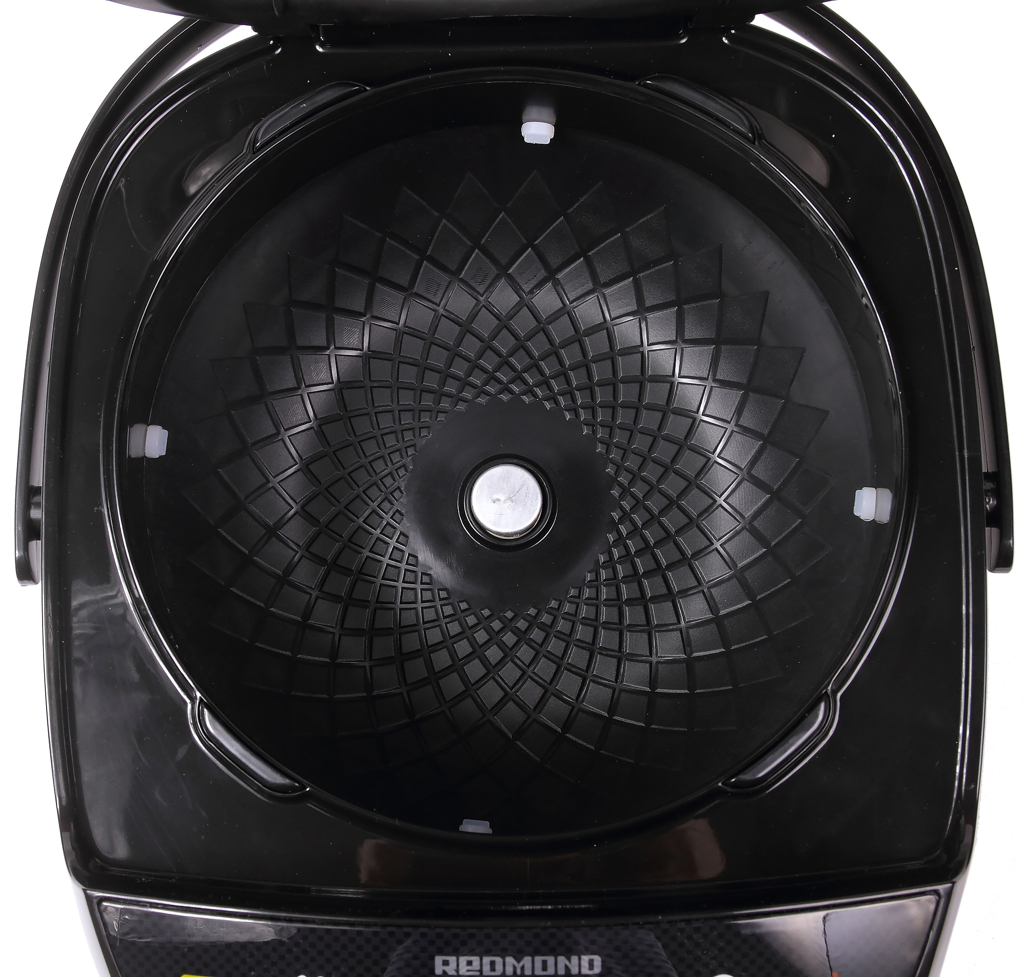 Внутренняя камера сделана из пластика с небольшими насечками-углублениями. Для фиксации чаши используются резиновые вставки. На дне камеры располагается подпружиненный датчик температуры. Такое устройство оказалось удобнее в эксплуатации, чем мультиварки с традиционной структурой камеры: проще бороться с конденсатом или попавшей на поверхность камеры влагой.