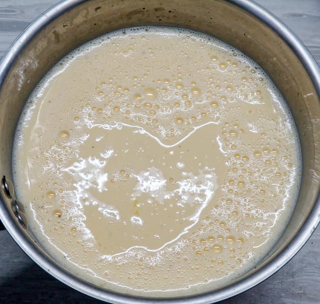 При необходимости — регулируем консистенцию пюре, добавляя горячее молоко.