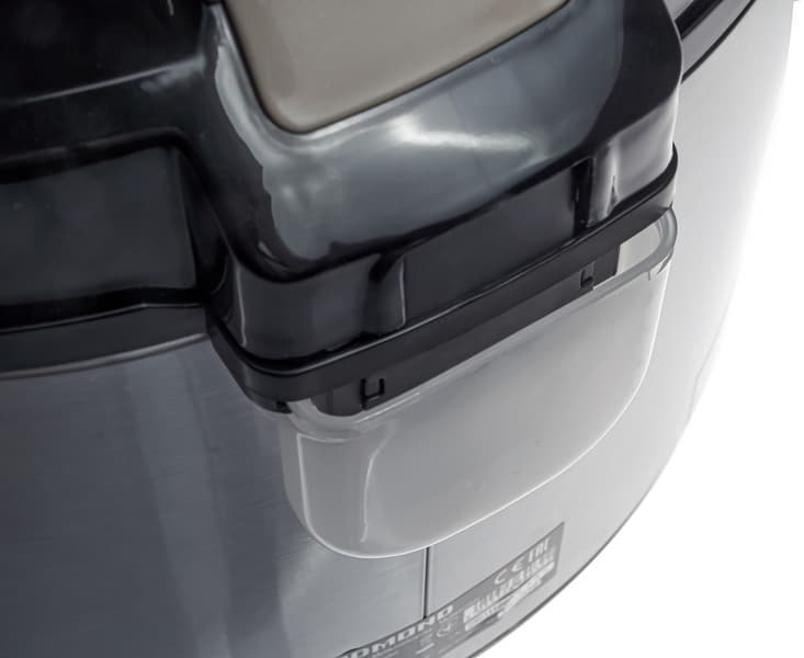 Единственный ощутимый недостаток тут — это несъемная внутренняя сторона крышки, отмывать которую придется придется вручную, стараясь при этом не залить и не запачкать сам прибор. Делимся небольшой хитростью — поскольку мультиварка весит довольно мало, то мультиварку можно перевернуть «вверх ногами» и подставить внутреннюю сторону открытой крышки под проточную воду. Если делать это аккуратно, то вся вода уйдет через отверстие для парового клапана.