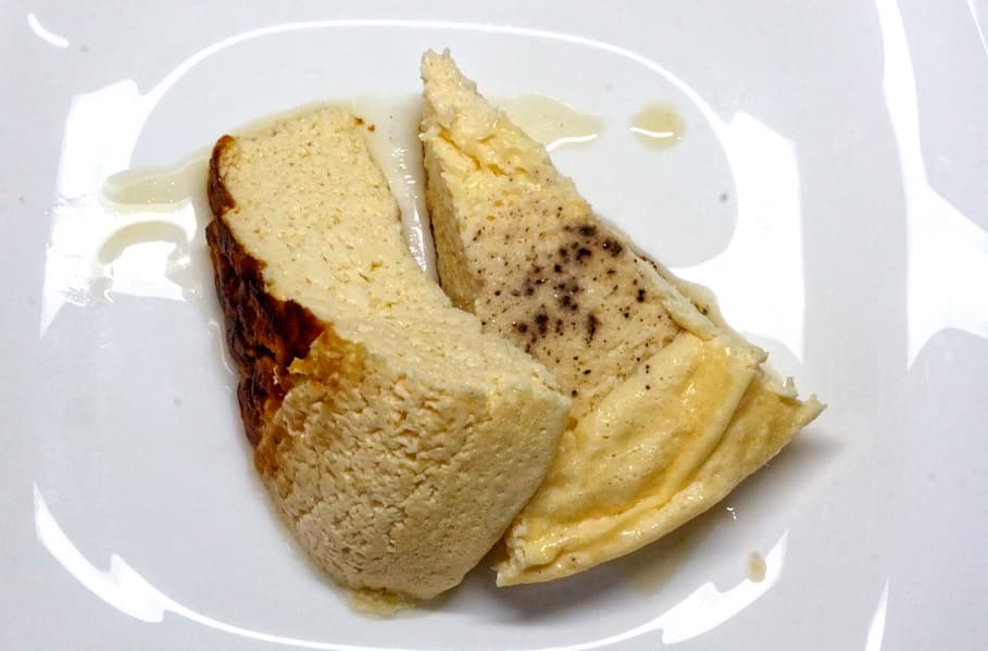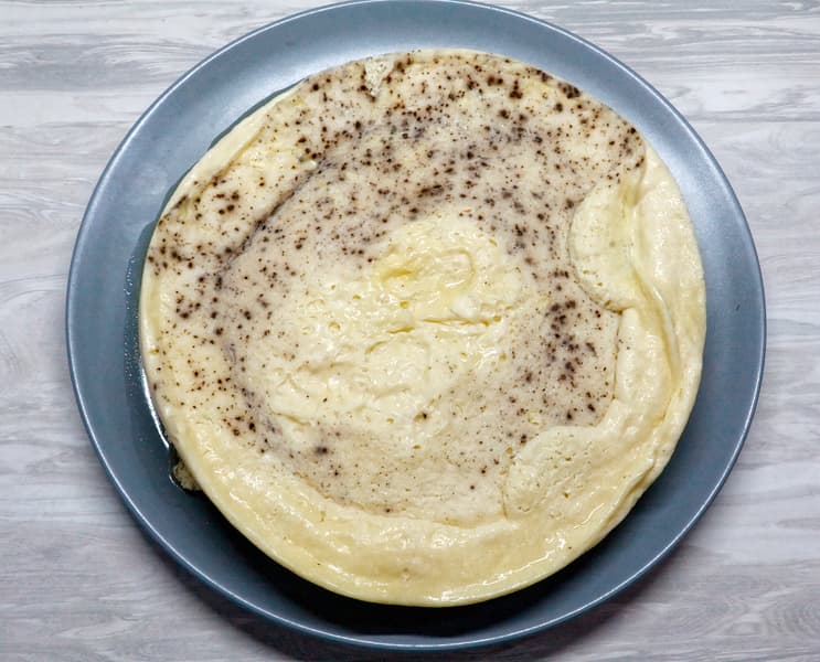 Результат — воздушный и нежный омлет без каких-либо усилий (черные точки — это молотый черный перец, который всплыл в процессе приготовления).