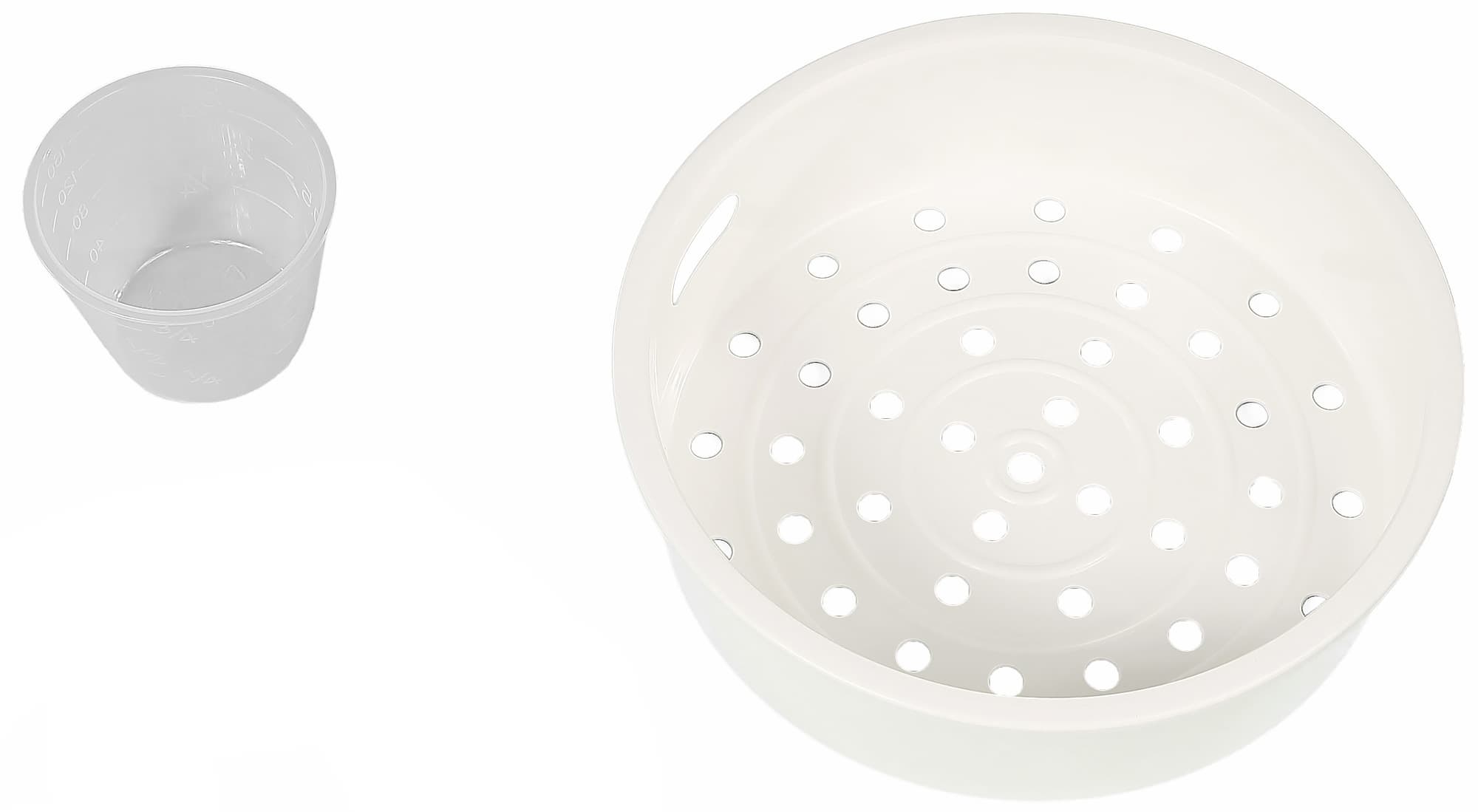Мерный стакан и ложку с черпаком мы убрали назад в коробку, а вот контейнер для варки на пару́ обязательно пригодится нам при тестировании прибора.