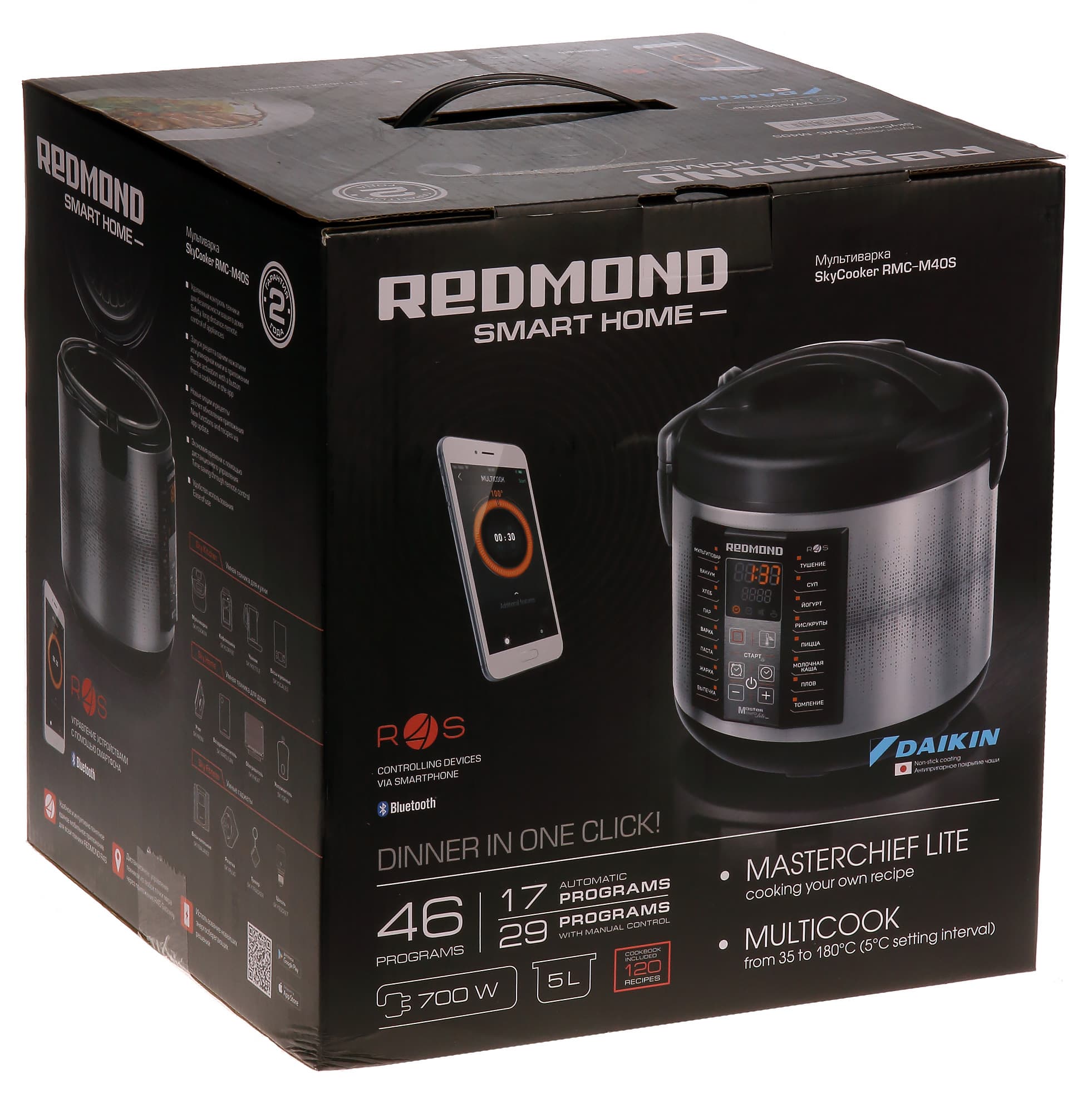 Кроме того, имеется возможность изменять параметры приготовления прямо по ходу работы, в том числе при использовании автоматических программ. Технология Ready for Sky позволит дистанционно управлять Redmond SkyCooker RMC-M40S с помощью интуитивно понятного приложения.