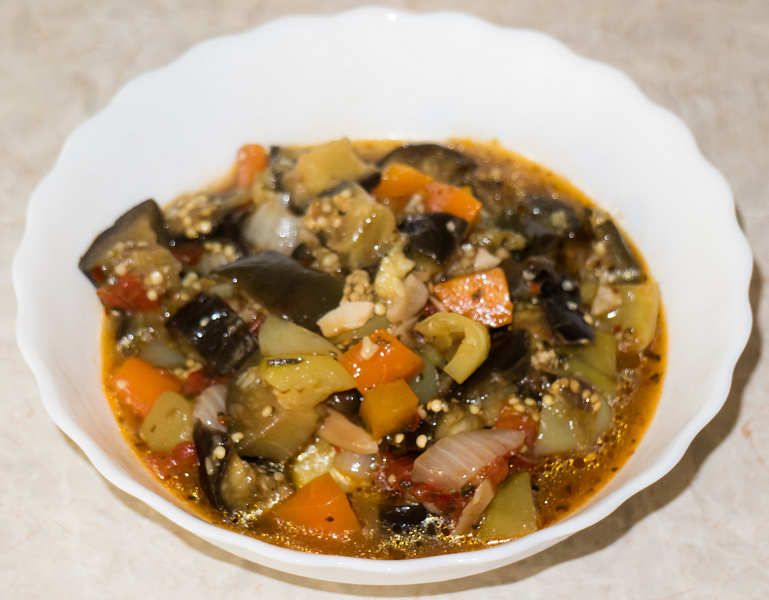 В дальнейшем, используя программу «Тушение», мы приготовили овощное рагу из кабачка, баклажанов, болгарского перца, помидоров, моркови, лука и чеснока. За 35 минут тушения и час автоподогрева овощи, на наш вкус, переварились. Так что нужно либо отключать функцию автоподогрева, либо сокращать время тушения.
