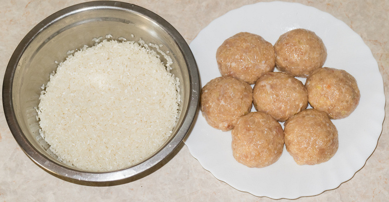 Чашу мультиварки смазали сливочным маслом и поместили в нее хорошо промытый рис. Залили водой. Сверху установили контейнер для варки на пару́. Закрыли мультиварку крышкой, включили программу «Рис», продолжительность варки 25 минут.